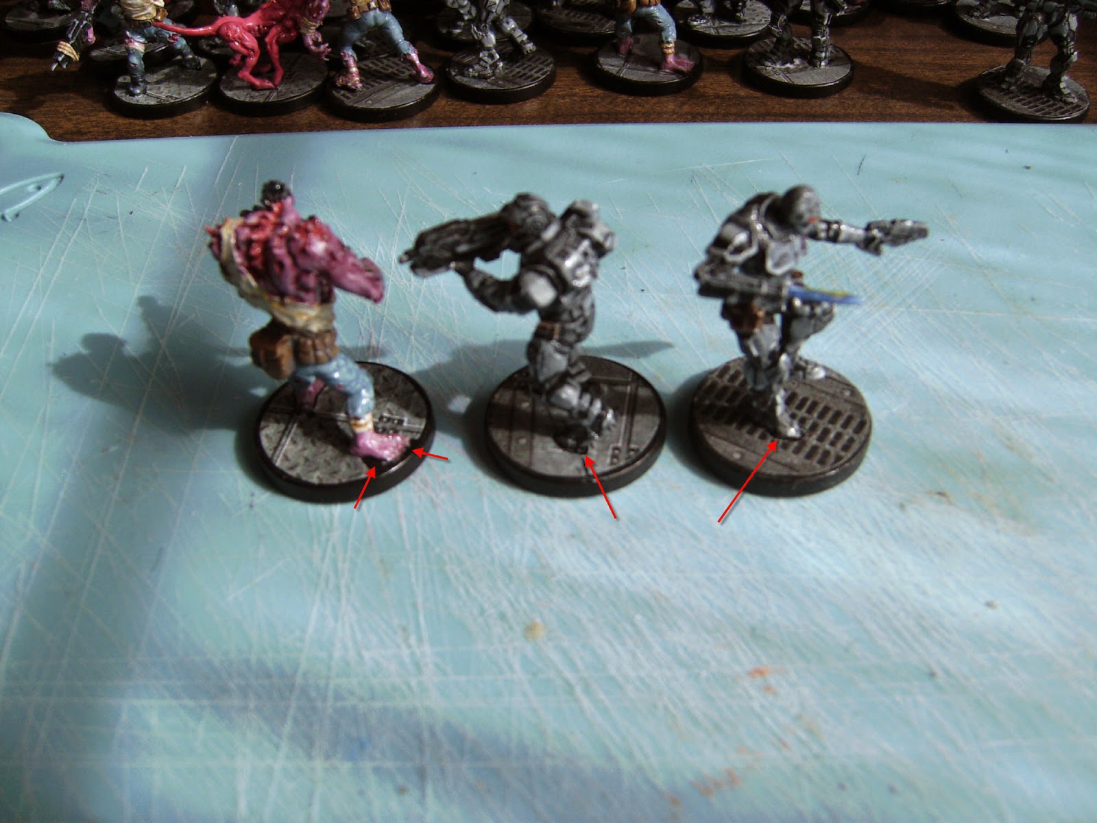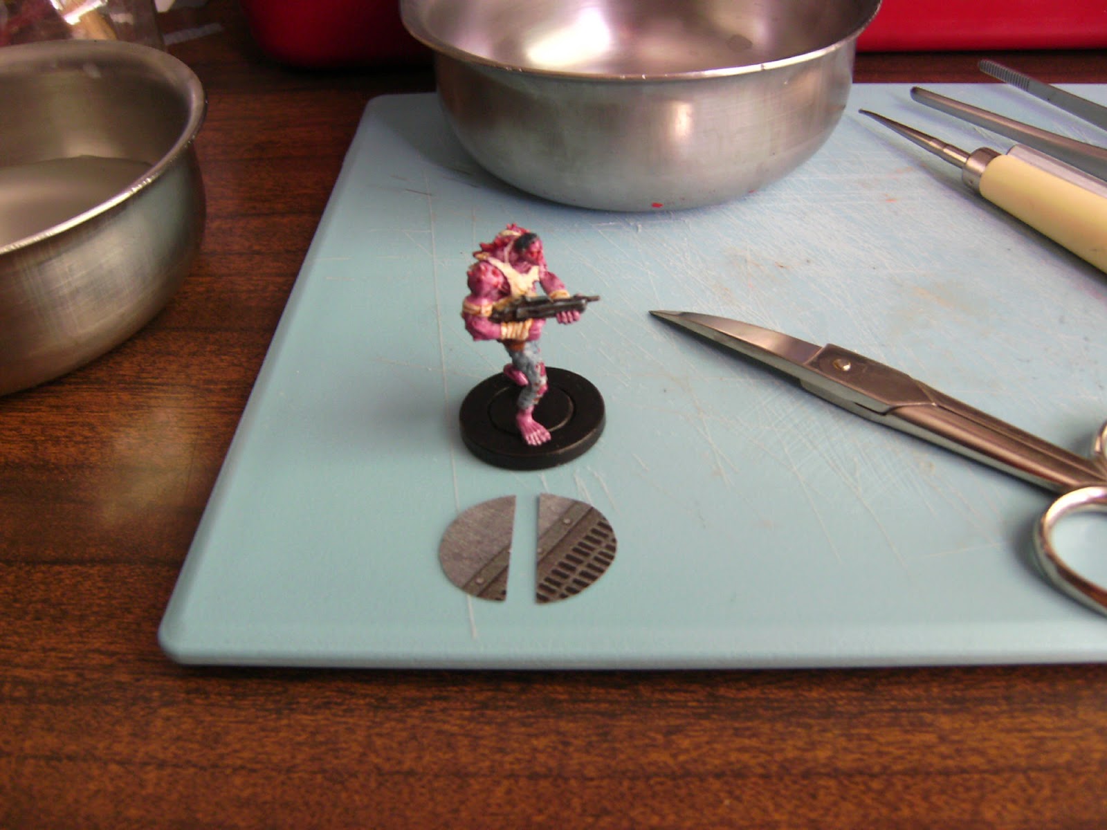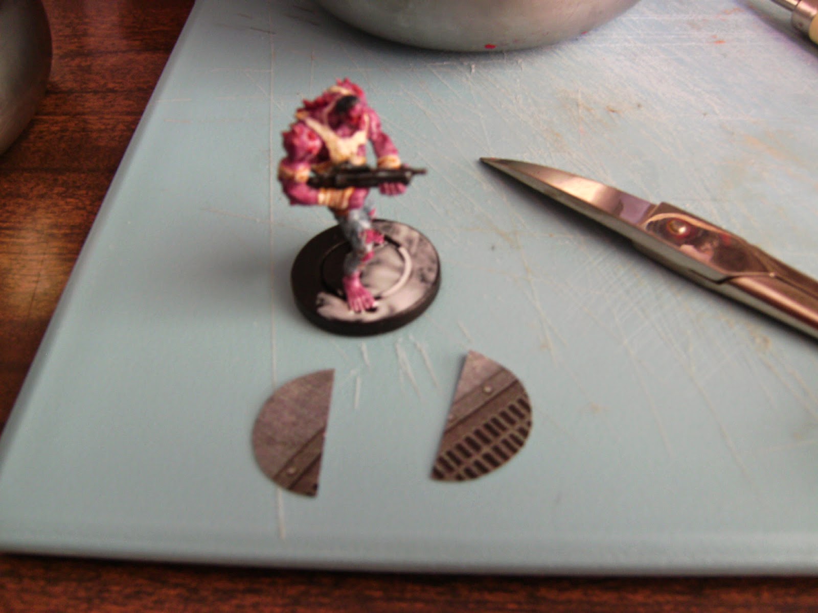 La verdad es que es mucho más sencillo decorar las peanas si no pegas las minis. En mi caso, como las minis de deadzone tienen un tag redondo que no quería quitar para evitar que algunas de ellas no queden firmes, tenía que hacerlo a lo «difícil». Lo fácil, y lo que haré con las de marauders, es hacerlo al revés, pintar por separado de la peana, y decorar las peanas con el circulito, sin recortes, salvo alguna que esté a la pata coja o algo así, que tenga la unión más débil.