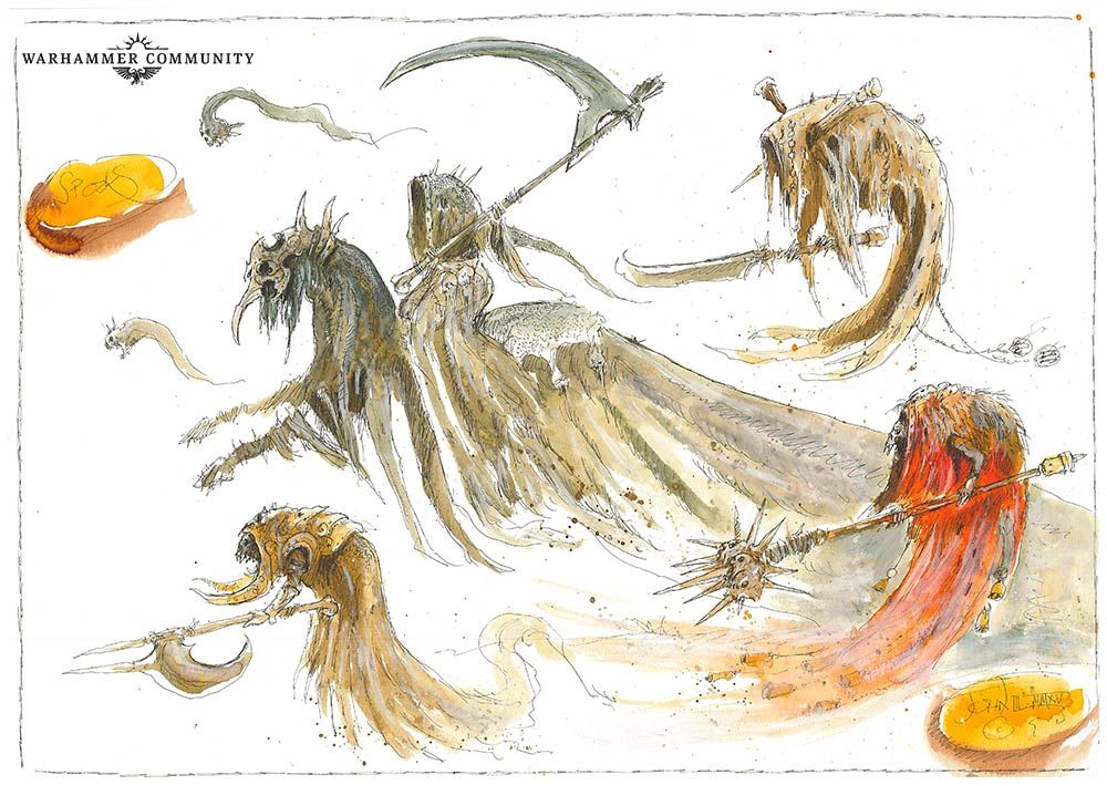 Así que toda esta movida era muy emocionante. Aunque no era algo en lo que estuviéramos trabajando en ese momento, ya que trabajábamos en los libros de El Fin de los Tiempos. Para darte una idea de la estructura, contamos con redactores de trasfondo y redactores de reglas. El equipo de trasfondo escribiría todo el trasfondo, e iríamos y aplicaríamos reglas a eso. Entonces, las miniaturas se hacían primero, luego se escribirían el trasfondo y narrativa, y las reglas se escribían para adaptarse al trasfondo y las miniaturas. Las reglas fueron en gran medida lo último en el proceso, y eso fue como el microcosmos de cómo era en GW en ese momento. Eso era así para todos los proyectos».