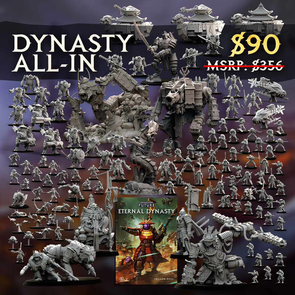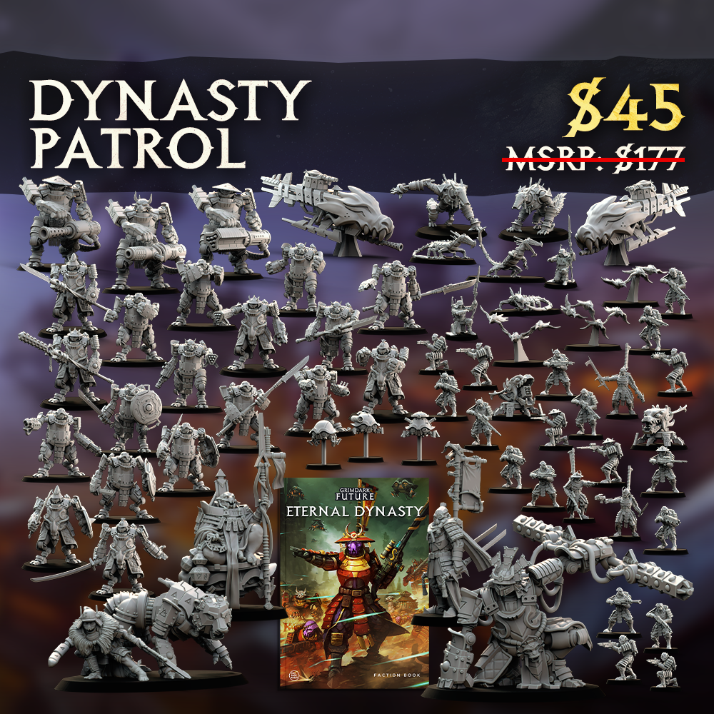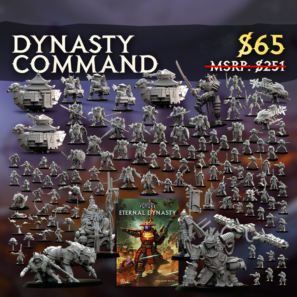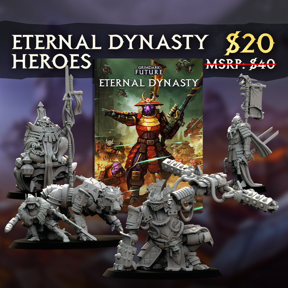 Para empezar , tenemos la nueva campaña de facción. Esta vez, nos centramos en la Dinastía Eterna : un ejército cibernetico samuraí muy característico de One Page Rules. Tenemos un primer lote con 4 héroes nuevos y un libro de facción en formato PDF a unos 20€ . Nada mal si solo buscas leer el trasfondo . Con los Duques lo hicieron bastante bien , así que el listón esta alto.