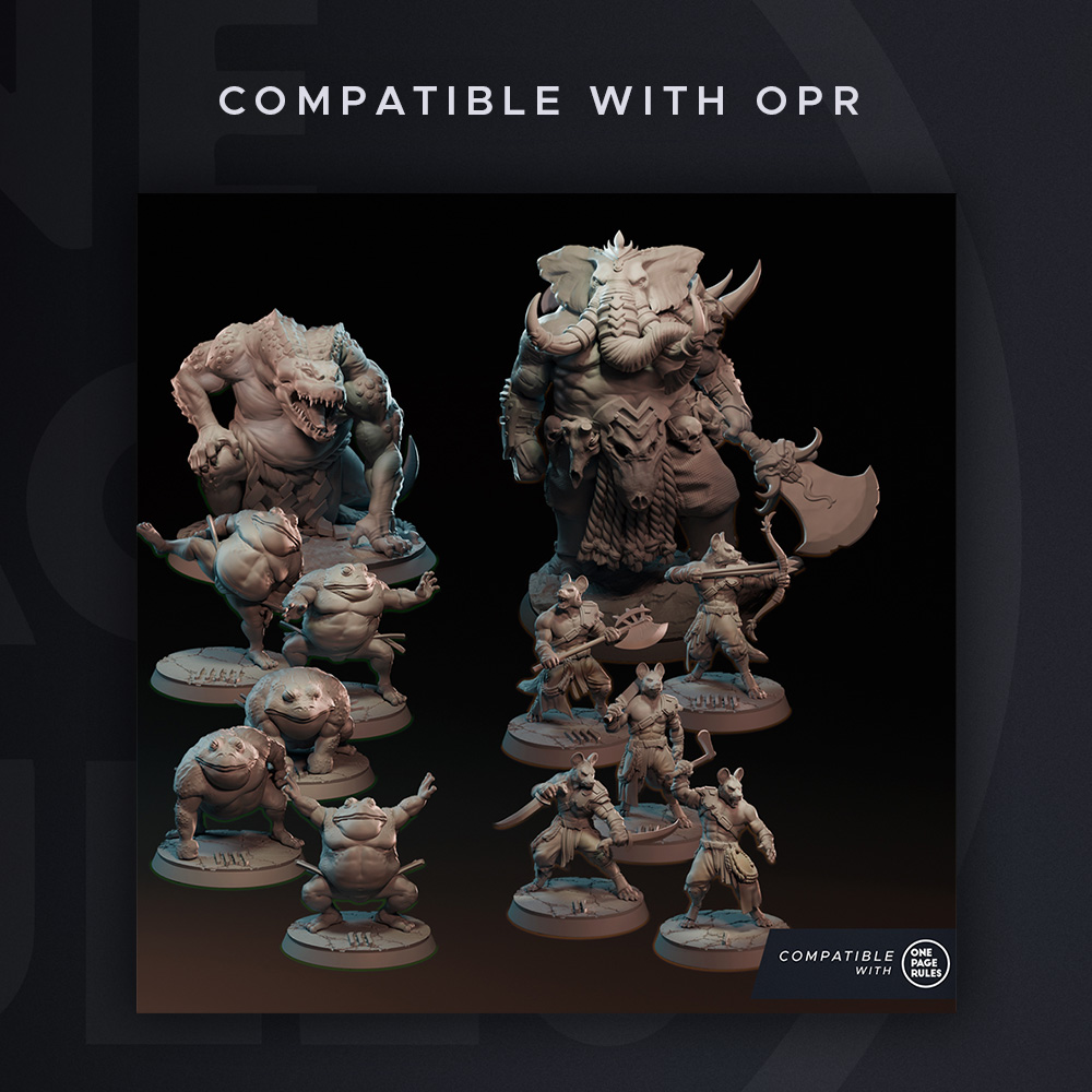 Recordatorio de que puedes usar cualquier miniatura en One Page Rules, siempre y cuando se parezca a tu lista . Puedes usar tu ejército de Warhammer 40k, de Infinity, de Kings of War.. de lo que quieras . Da igual la edición o el material , se puede usar en OPR. Llegar 3.000 puntos no es difícil en absoluto con un ejército ya existente y un poco de impresión 3D.