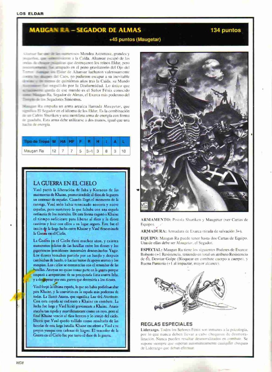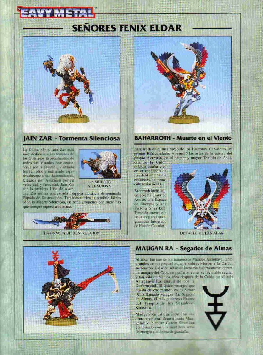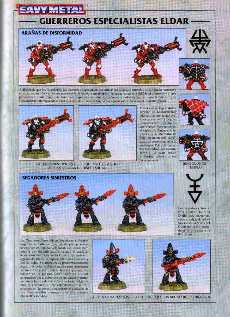 Como he mencionado, el número estaba centrado en 40k. Y uno de los platos fuertes eran los Eldar (porque eran novedad ese mes). Para empezar teníamos seis páginas hablando de tropas especializadas y algunos personajes especiales.