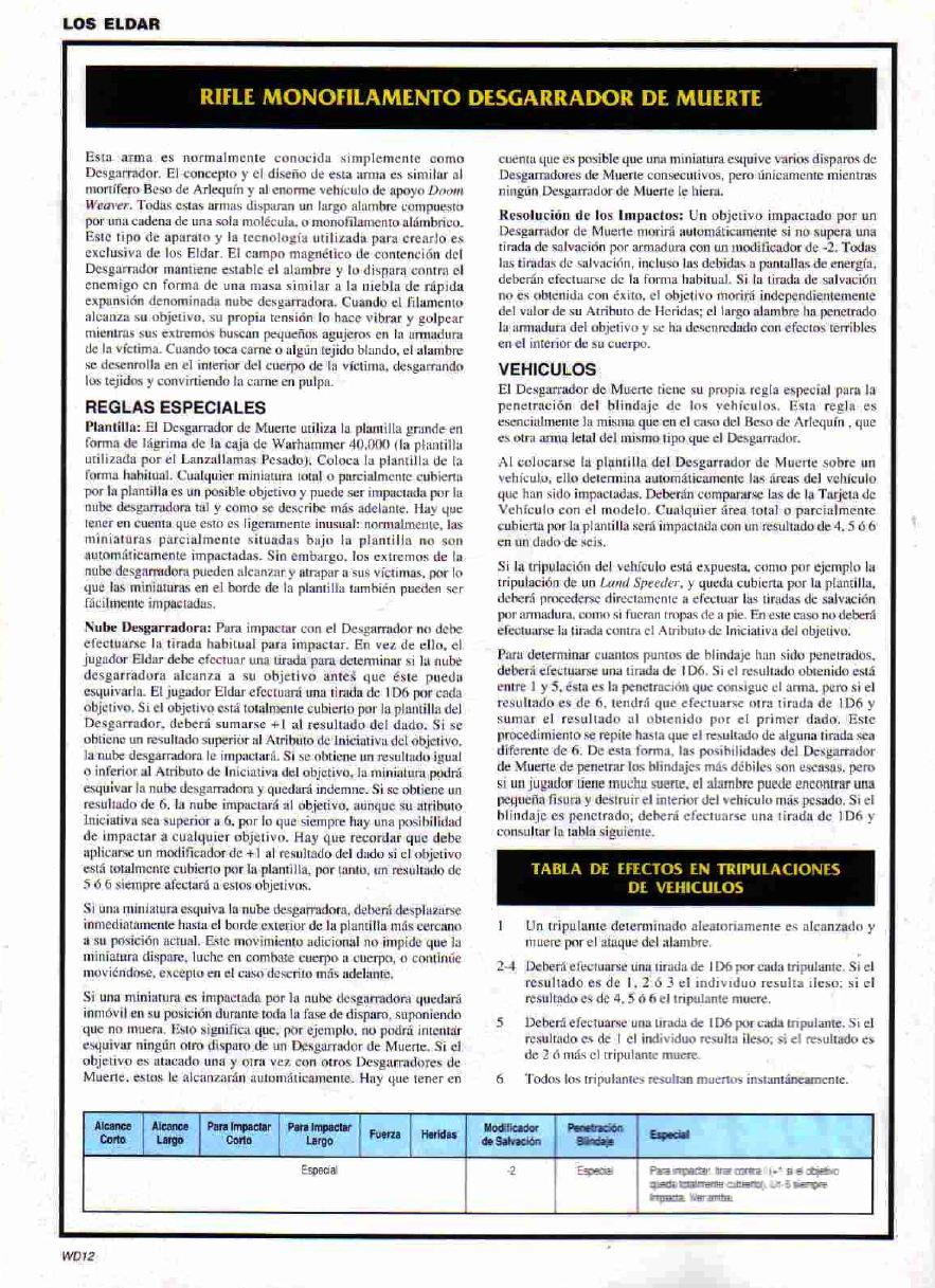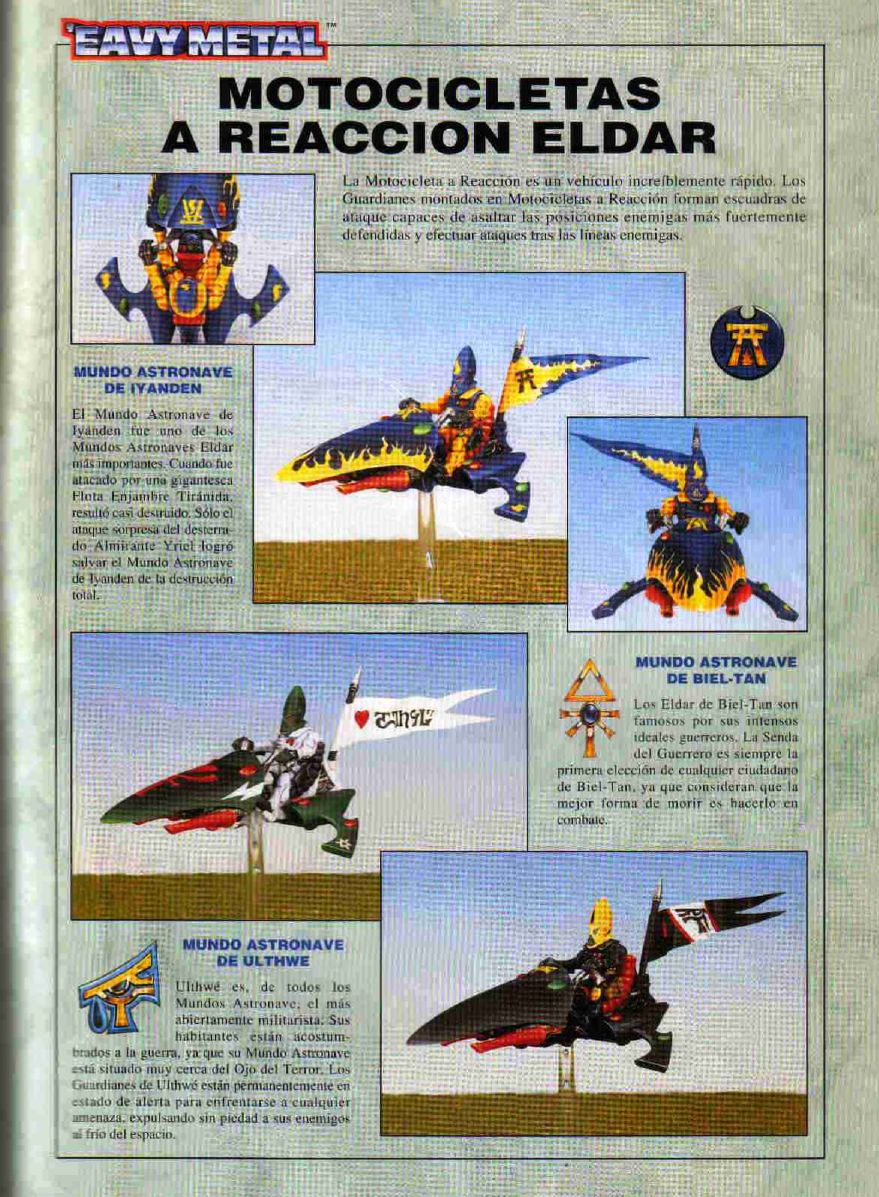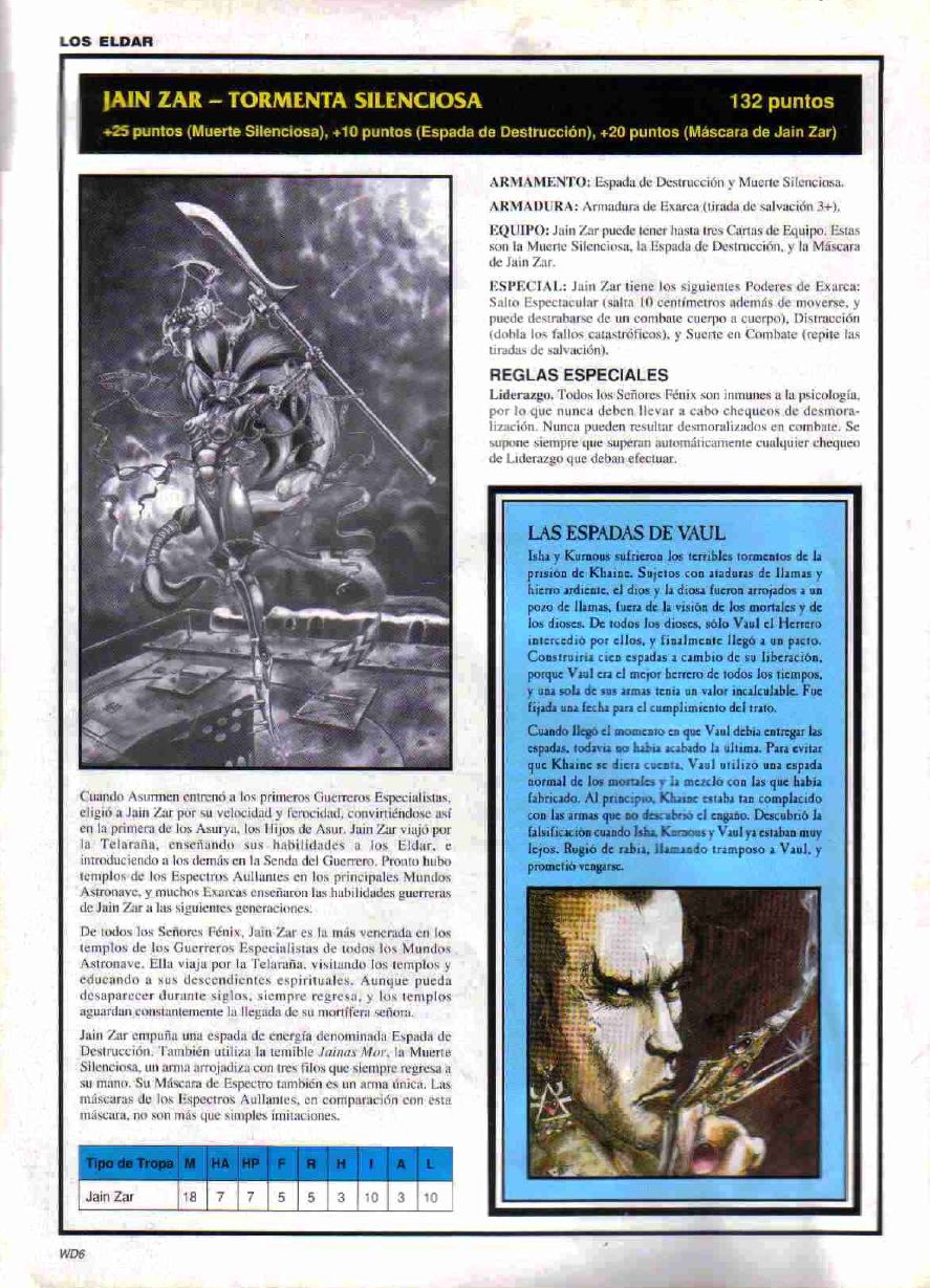 Como he mencionado, el número estaba centrado en 40k. Y uno de los platos fuertes eran los Eldar (porque eran novedad ese mes). Para empezar teníamos seis páginas hablando de tropas especializadas y algunos personajes especiales.