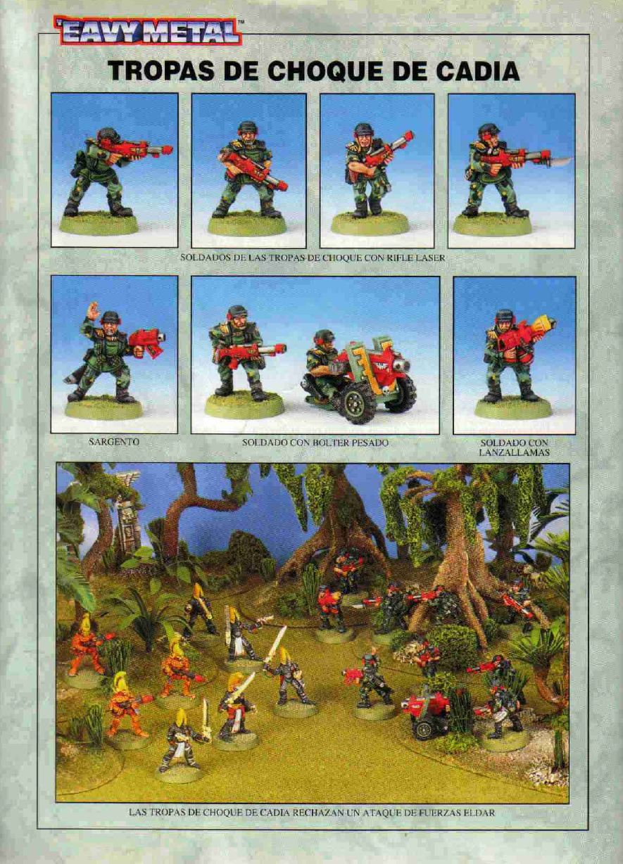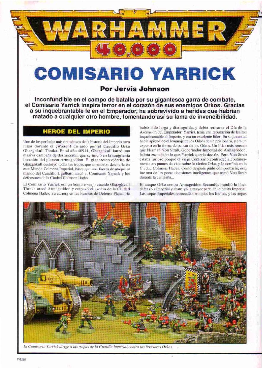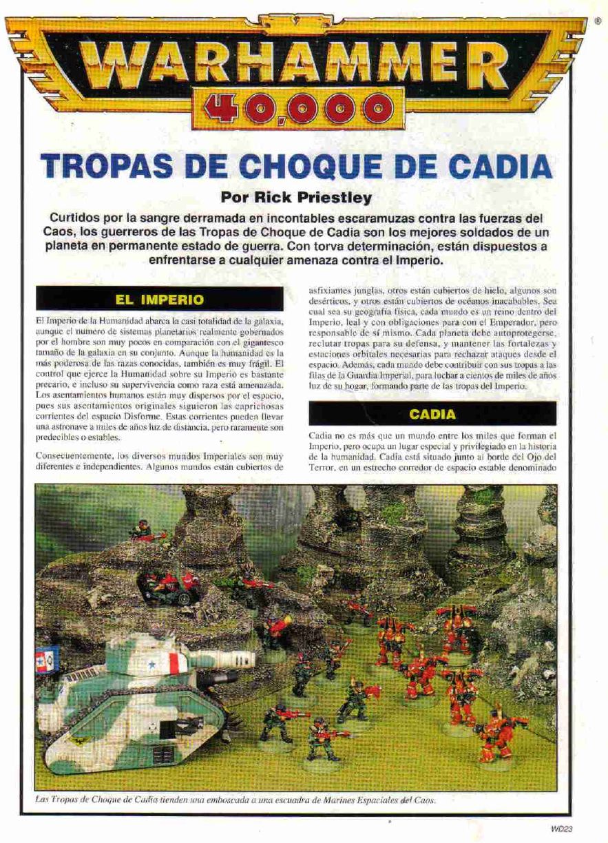Si bien aún no tenían códex propio en nuestro idioma, no hacía mucho que iban anunciando nuevas tropas para la Guardia Imperial. Este mes la Guardia era otro de los protagonistas. Para empezar, con tres páginas dedicadas a las Tropas de Choque de Cadia, y tres páginas al infame Comisario Yarrick.
