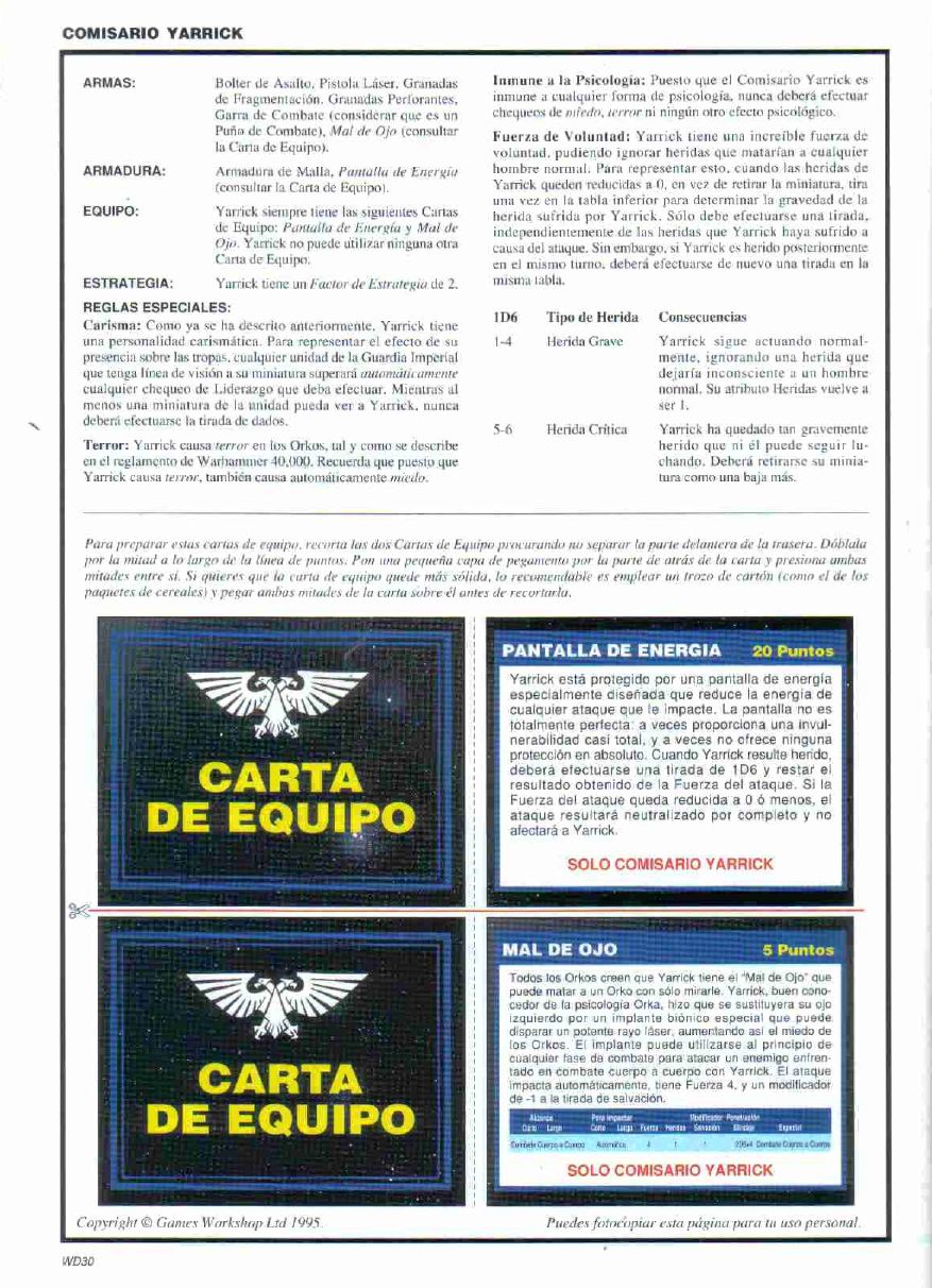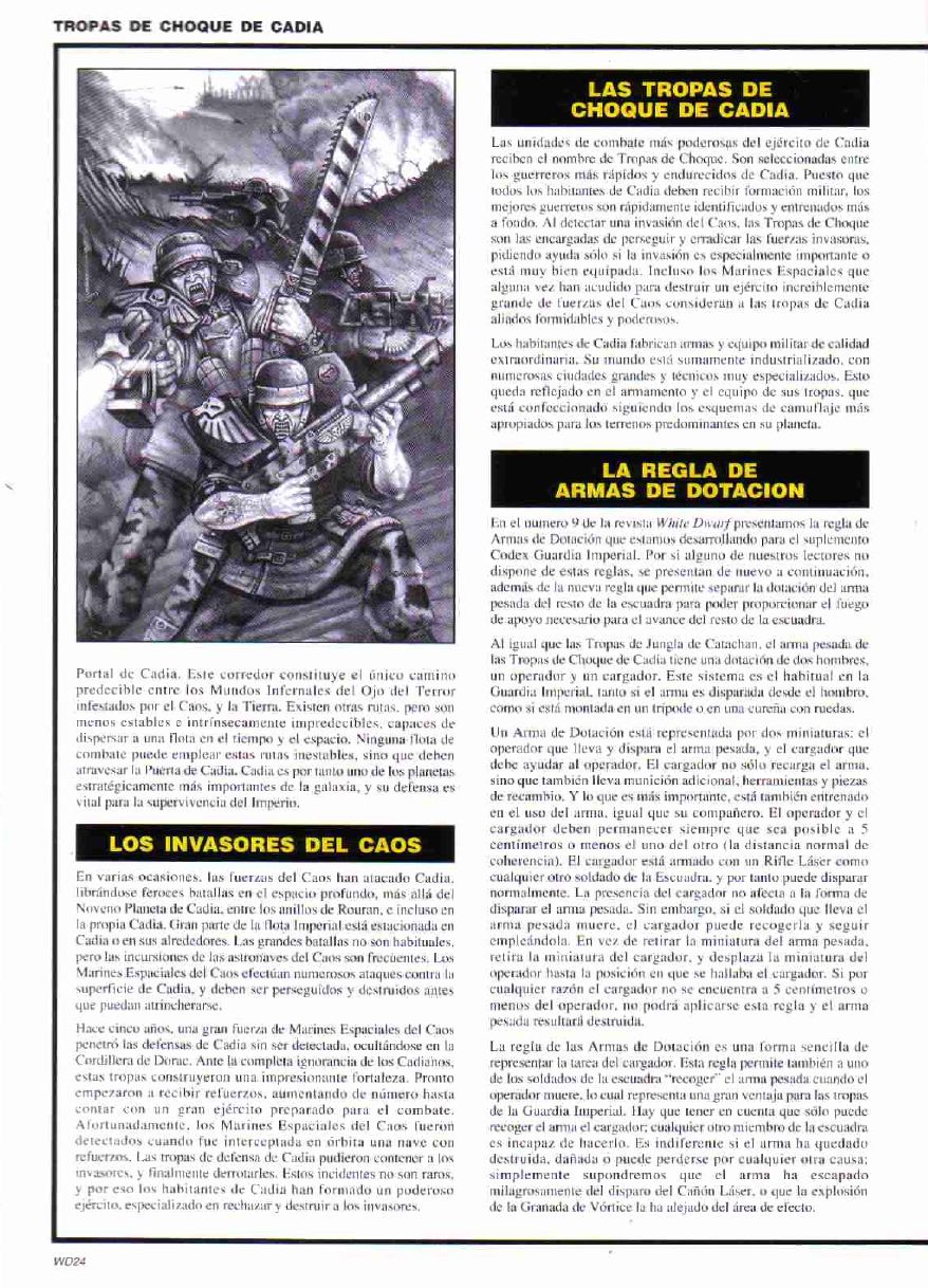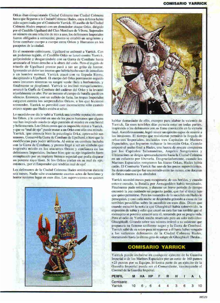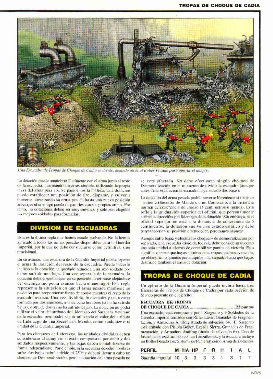 Si bien aún no tenían códex propio en nuestro idioma, no hacía mucho que iban anunciando nuevas tropas para la Guardia Imperial. Este mes la Guardia era otro de los protagonistas. Para empezar, con tres páginas dedicadas a las Tropas de Choque de Cadia, y tres páginas al infame Comisario Yarrick.