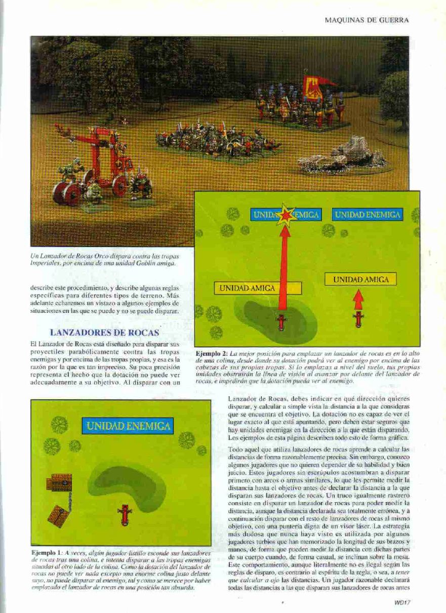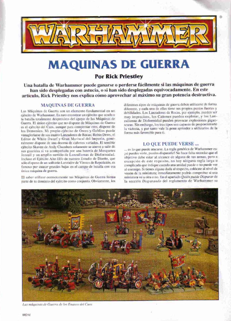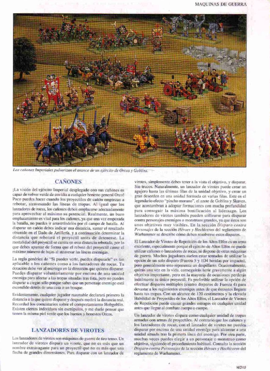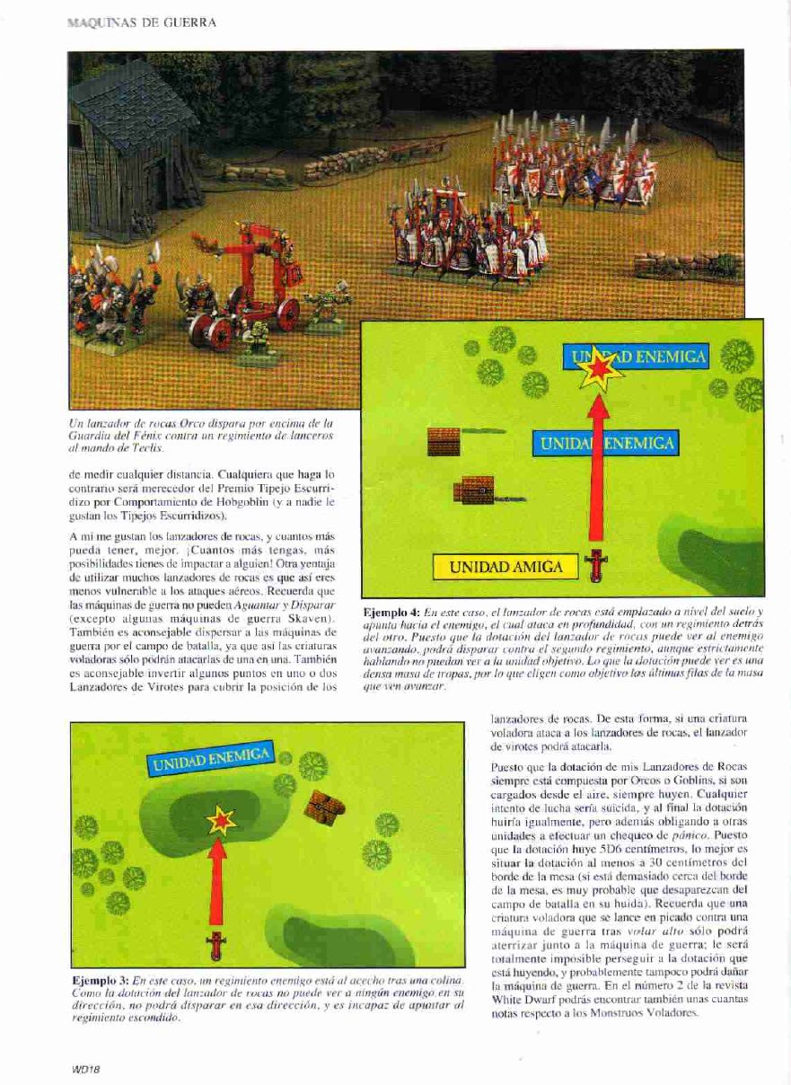 De Warhammer sólo teníamos una página hablando de los orcos negros (porque eran novedad, como veremos), y cinco con un muy interesante artículo sobre cómo usar y disfrutar las máquinas de guerra.