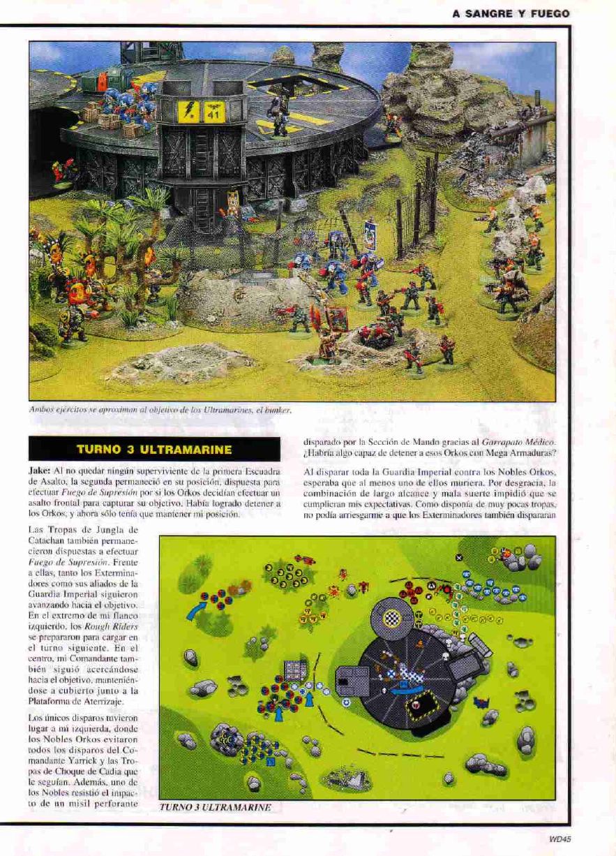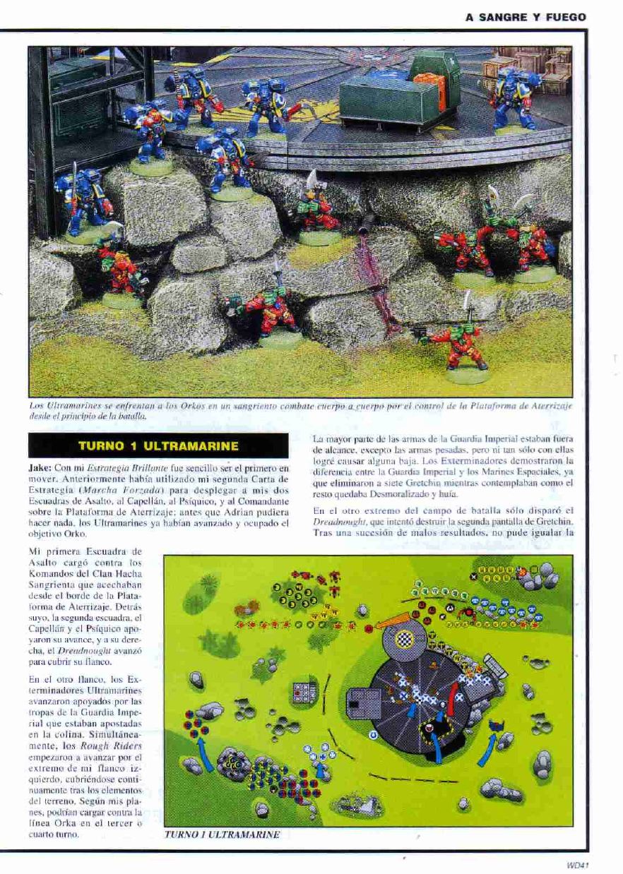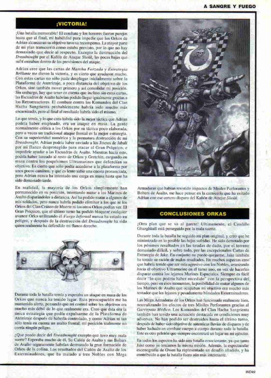 El artículo más extenso del mes era un informe de batalla entre el Imperio (Ultramarines, con Guardia Imperial aliada, incluyendo a Garrick) y los Orkos. Por supuesto, ganan los marines. El informe me parece una novela de Dan Abnett, muy chula, intensa, pero con un final precipitado.