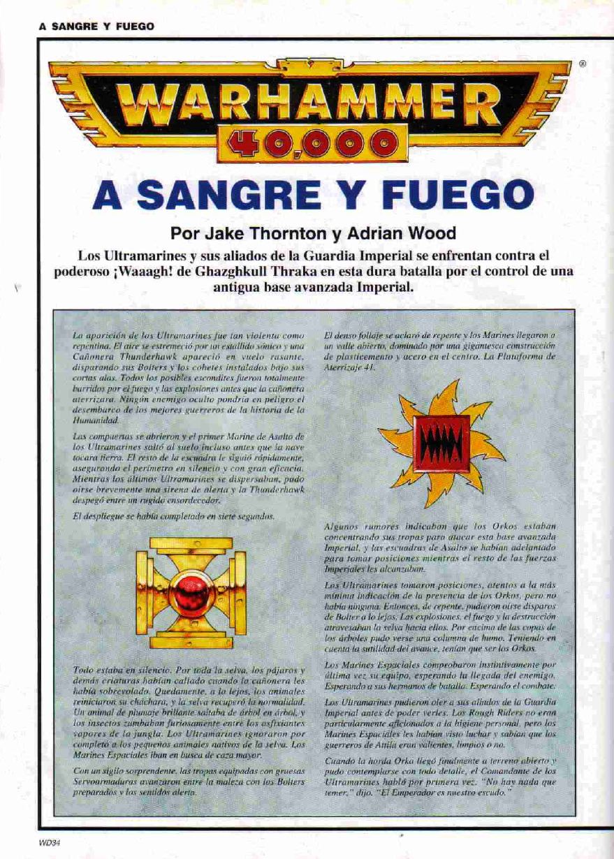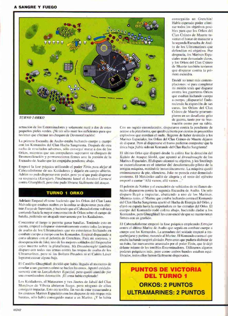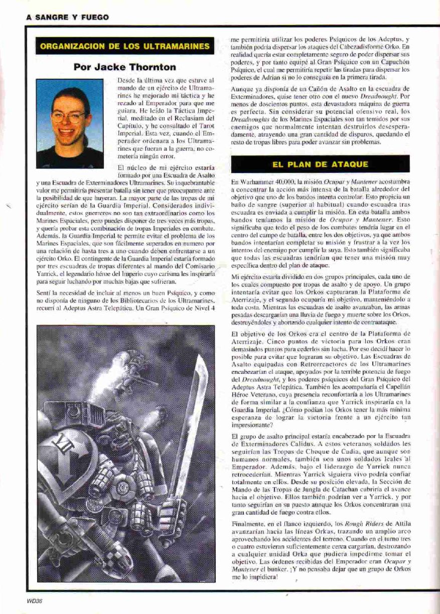 El artículo más extenso del mes era un informe de batalla entre el Imperio (Ultramarines, con Guardia Imperial aliada, incluyendo a Garrick) y los Orkos. Por supuesto, ganan los marines. El informe me parece una novela de Dan Abnett, muy chula, intensa, pero con un final precipitado.