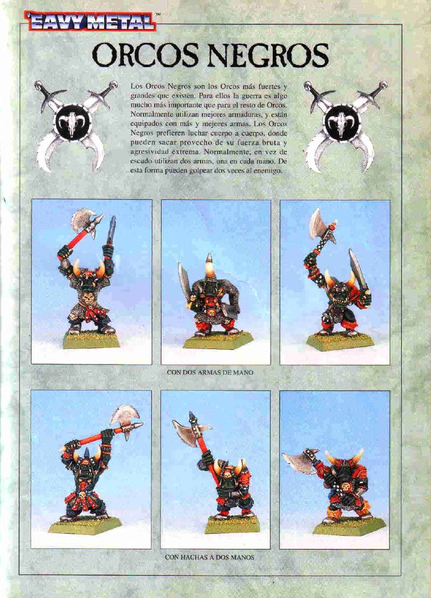 Disperso por toda la revista, había varias páginas de ‘Eavy Metal. Teníamos cinco páginas de miniaturas de los Eldar (plato fuerte), otra de Guardia (otro plato fuerte) y finalmente una triste página con algunos Orcos Negros.