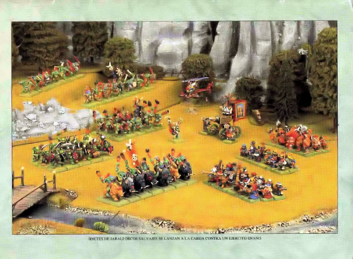 Despedimos el décimo número de la White Dwarf española con una foto de orcos y goblins luchando contra enanos, en una imagen típica de la época.