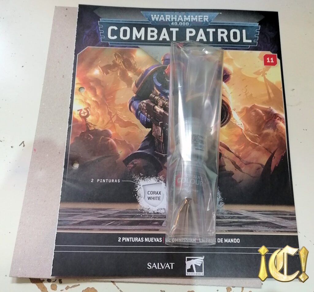 Otro número en este envío en el que sólo tenemos dos pinturas. Sí, son dos pinturas MUY útiles, Base Corax White (3.60€) y Base Leadbelcher (3.60€). 7.20€, habinedo pagado 10.99€ (sin descuento ni premium), otro número con pérdidas. Y en este envío ya van dos. La verdad es que entre el follón con el archivador, dos números con pérdidas y un número «a medias», este envío es de lo peorcito de la colección. Bueno, al menos tanto la Corax como Leadbelcher son pinturas que, sí, VAS A GASTAR. Así como tengo varios Retributor, no me ha sobrado ningún Corax ni Leadbelcher (especialmente este último), por lo que no está mal. Personalmente, como ya comenté, habría puesto un pincel en cada uno de estos números para hacerlos más «majos», o al menos tres pinturas en vez de dos… pero bueno, hay lo que hay.