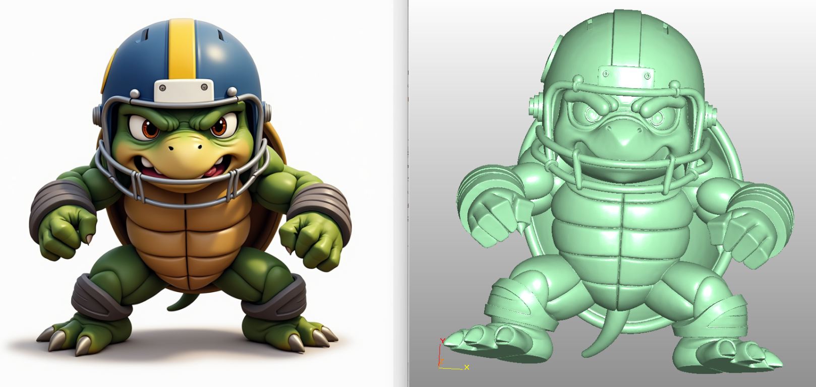Undo ayer estuvo jugando con una nueva herramienta 3D. Os explico de qué va el tema: hay una IA que a partir de una imagen (o unas imágenes) es capaz de generarte un fichero STL. Dicho de otra forma, tú le pasas una foto, una imagen, un boceto… y esa IA (que ahora mismo está en pruebas) es capaz de generarte un fichero STL. Como por ejemplo nuestra mascota Metrín (aquí tenéis el STL por si queréis imprimiros esta versión).