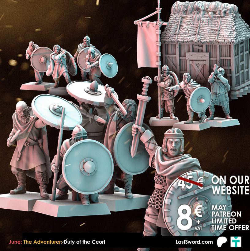 Como cada mes, Last Sword sacan un buen puñado de STL’s para sus mecenas en su Patreon y que terminarán estando a la venta en su tienda online (tanto el STL como la miniatura impresa en alta calidad). Como ya sabéis, ahora mismo tienen dos niveles de aportación en Patreon: The Bannerman (10€ más IVA al mes, con miniaturas de fantasía, normalmente paralelas a Warhammer; este mes Altos Elfos), y The Adventurer (9.50$, miniaturas «históricas»), o bien 18.50$ (más IVA) por un completo.