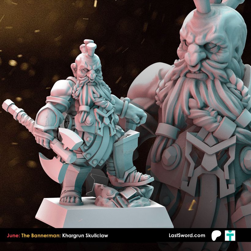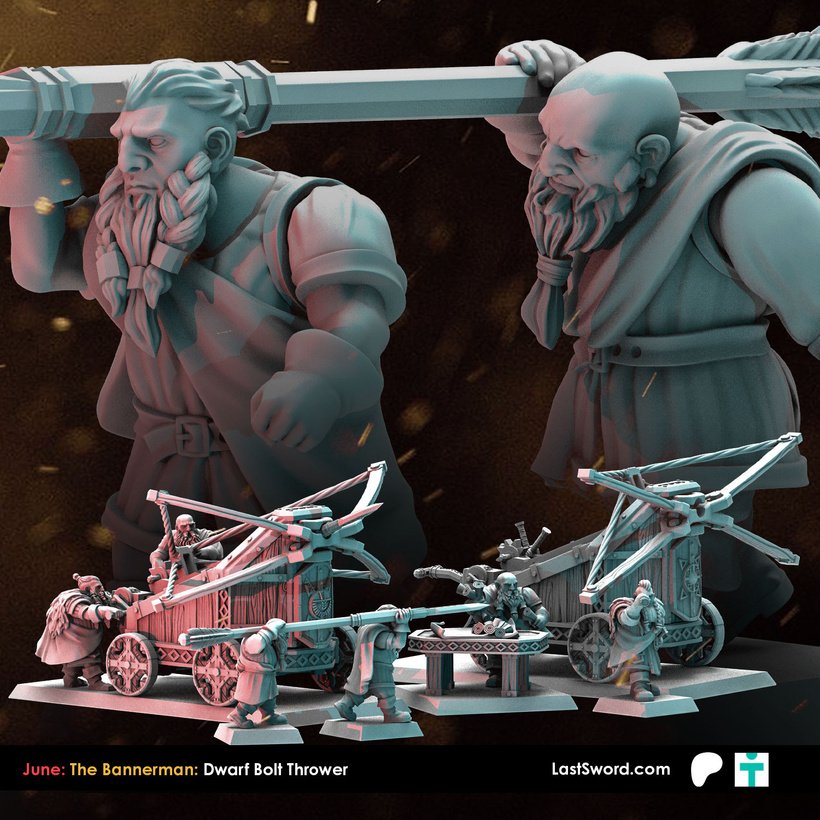 Los fans de los enanos están de enhorabuena, porque el nivel The Bannerman viene cargadito este mes. Tenemos una unidad de mineros, dos carros (carro de minero y carro de cerveza), un personaje matador y una unidad de Matadores, y por último un ingeniero y dos lanzavirotes. Me gustan mucho los lanzavirotes, como dicen ellos mismos se han alejado del diseño más «fantasy» y lo han acercado al diseño de ESDLA. Pero desde el diseño de la máquina a los artilleros, pasando por el tío en la mesa, creo que es lo más chulo de este mes.