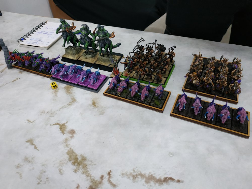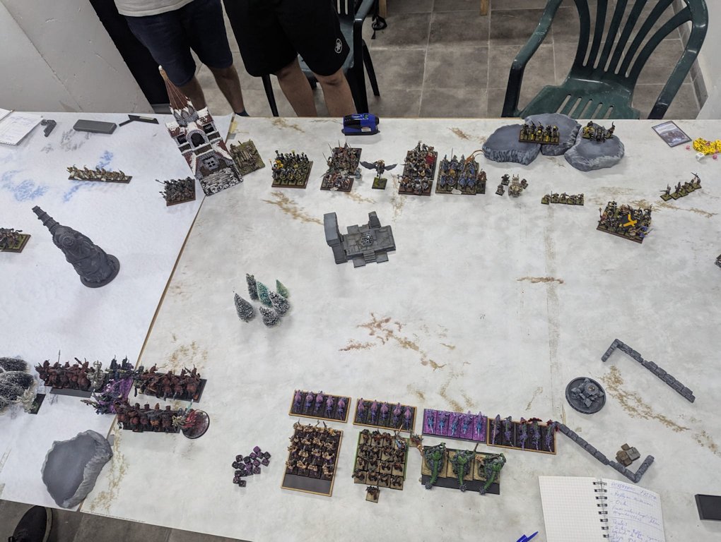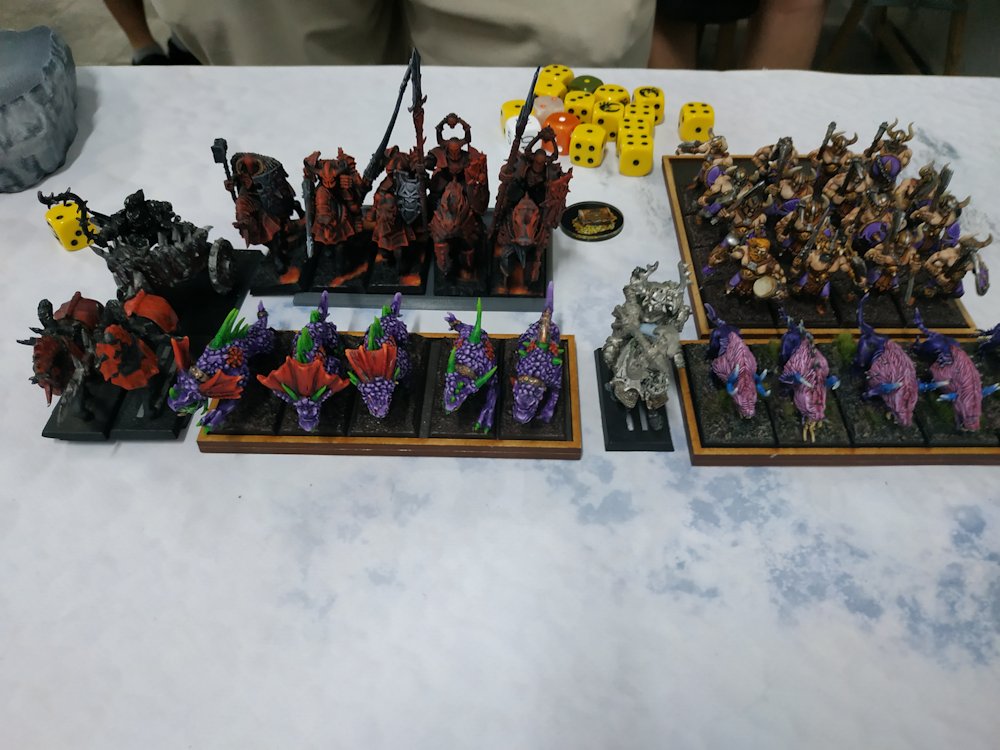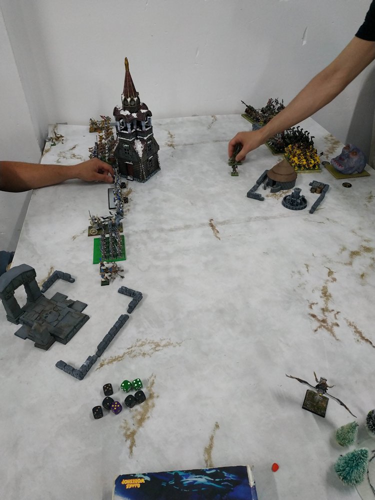Dos partidas “ a dobles” y una partida 1 vs 1 (Teclis y sus elfos contra Belakor y sus legiones demoniacas)