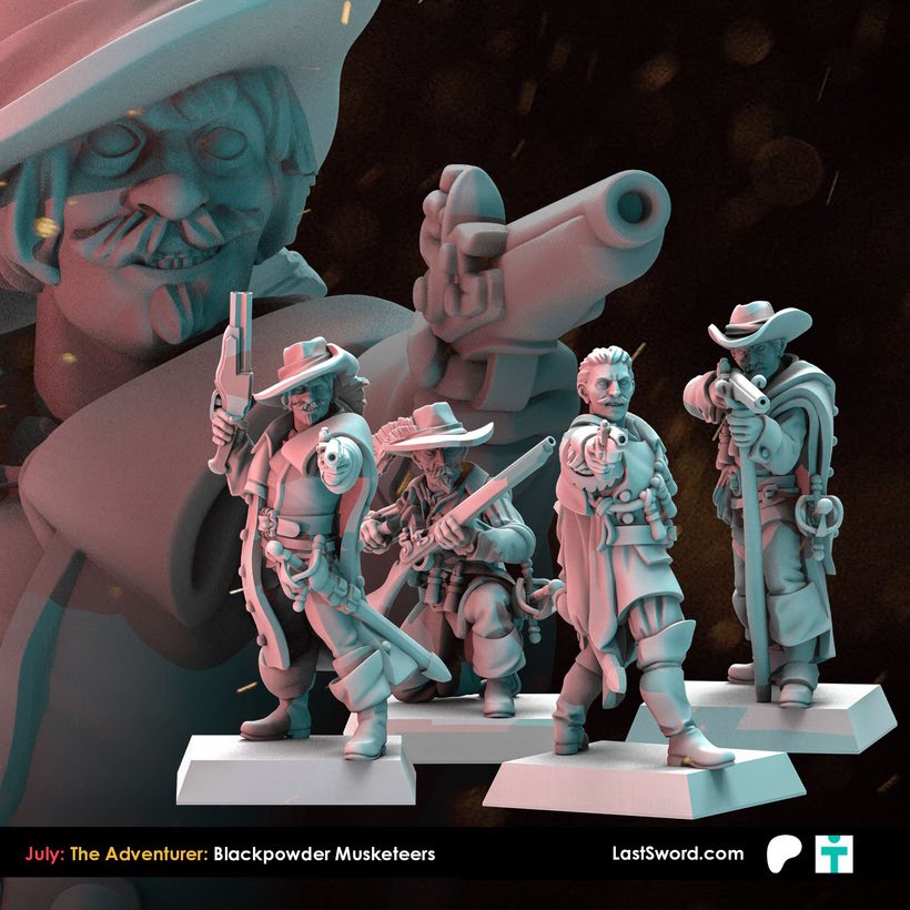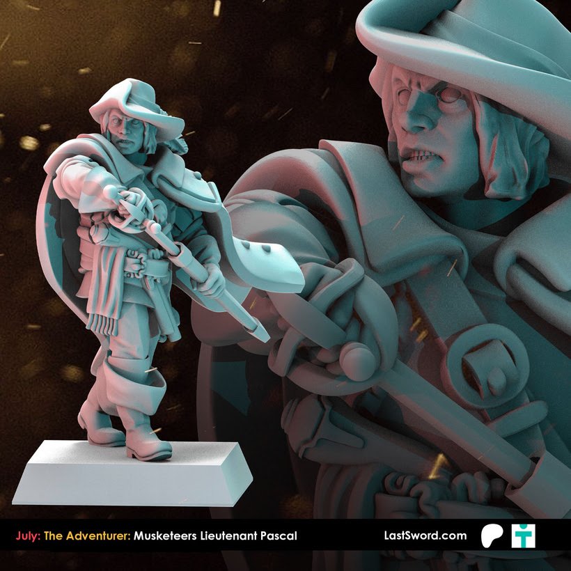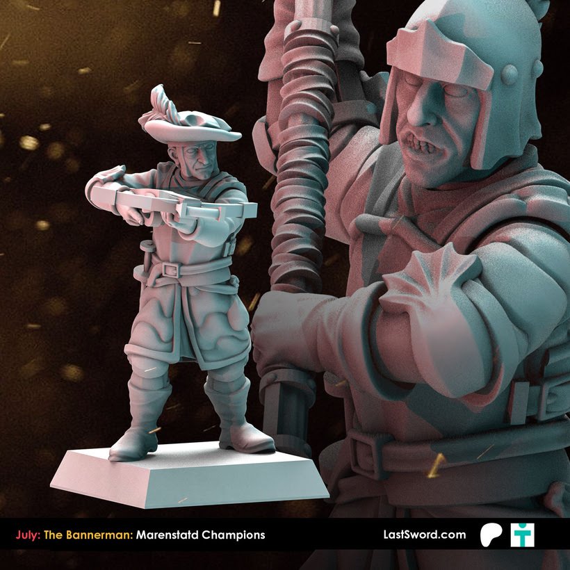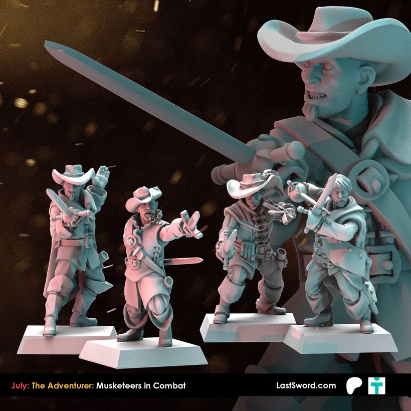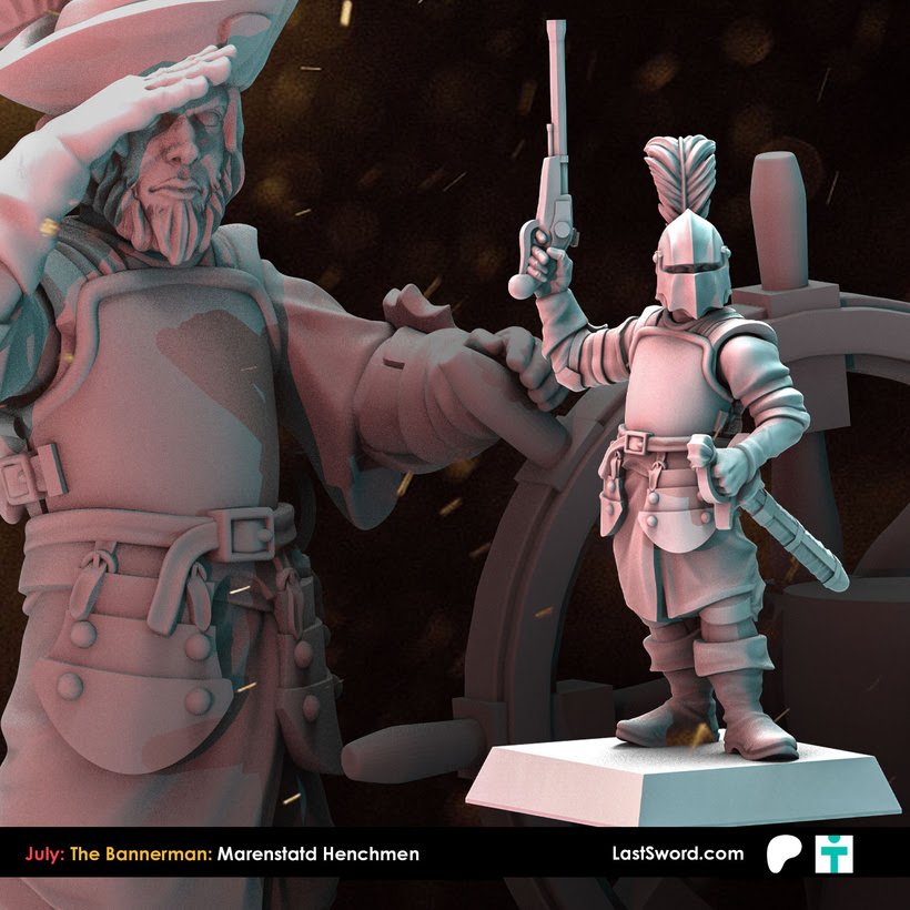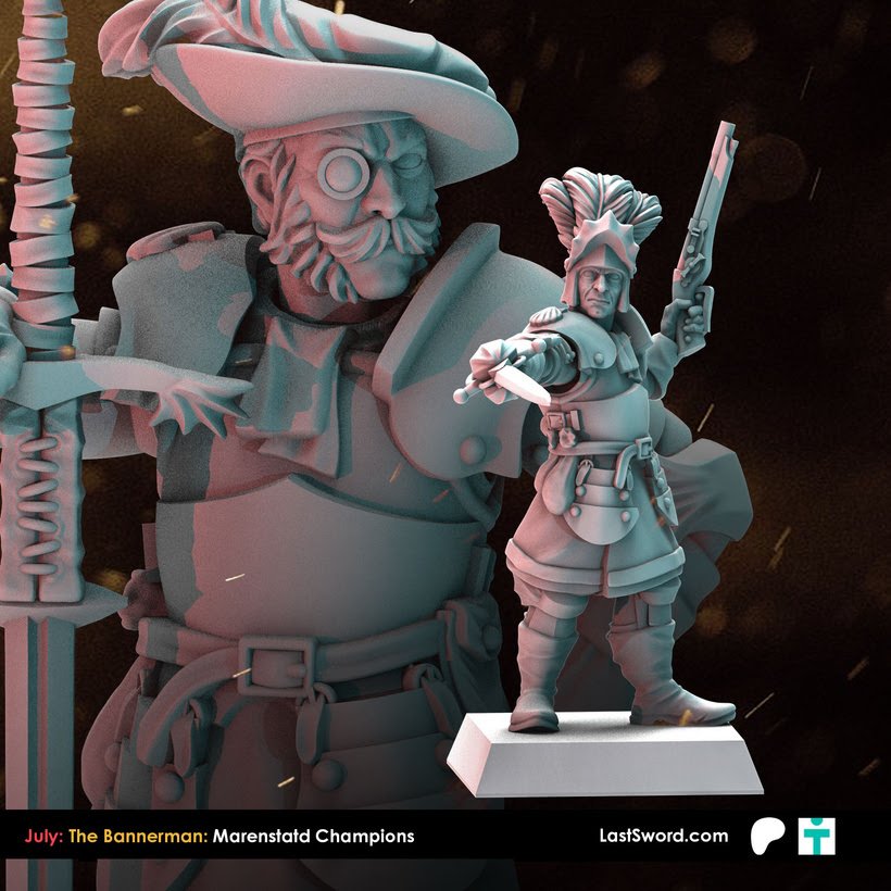 Como cada mes, Last Sword sacan un buen puñado de STL’s para sus mecenas en su Patreon y que terminarán estando a la venta en su tienda online (tanto el STL como la miniatura impresa en alta calidad). Como ya sabéis, ahora mismo tienen dos niveles de aportación en Patreon: The Bannerman (10€ más IVA al mes, con miniaturas de fantasía, normalmente paralelas a Warhammer; este mes Altos Elfos), y The Adventurer (9.50$, miniaturas «históricas»), o bien 18.50$ (más IVA) por un completo. Este mes, Marienburgo para Bannerman, y Mosqueteros para Adventurer.