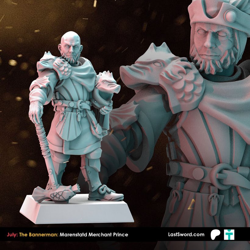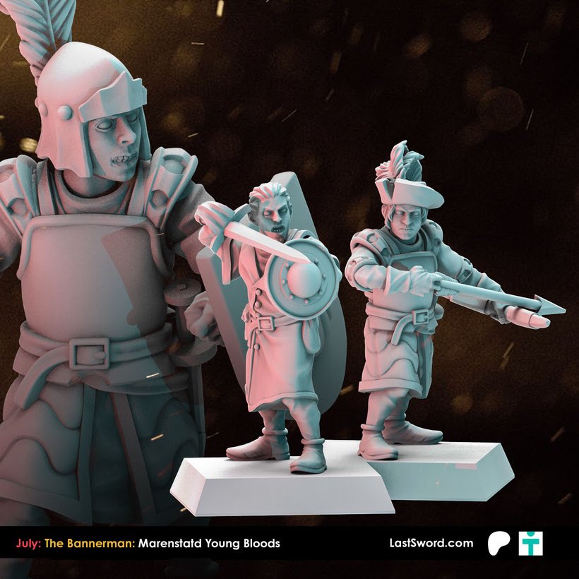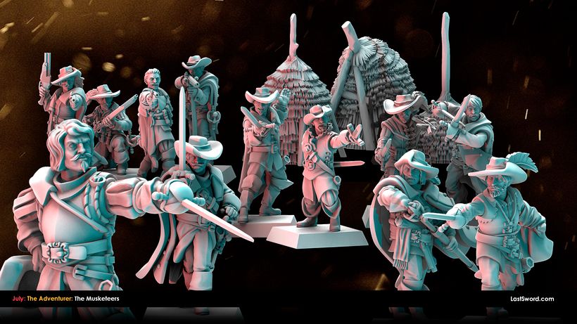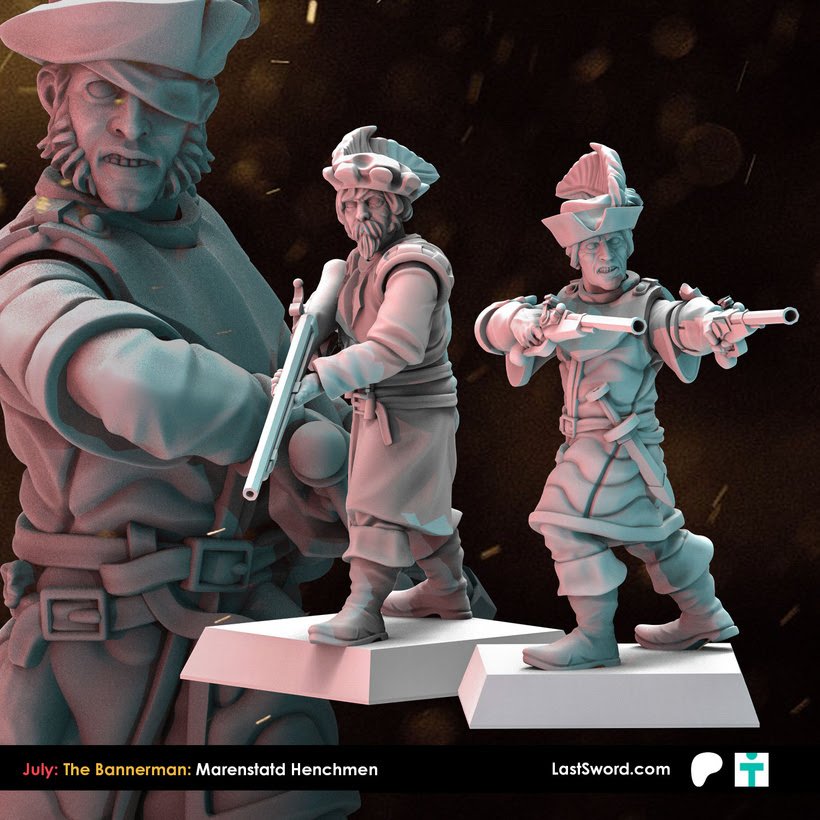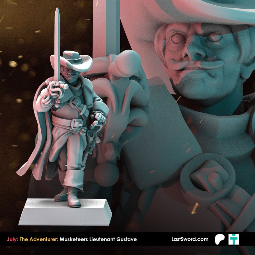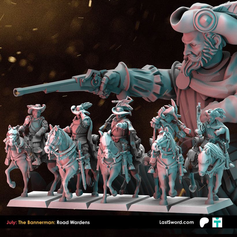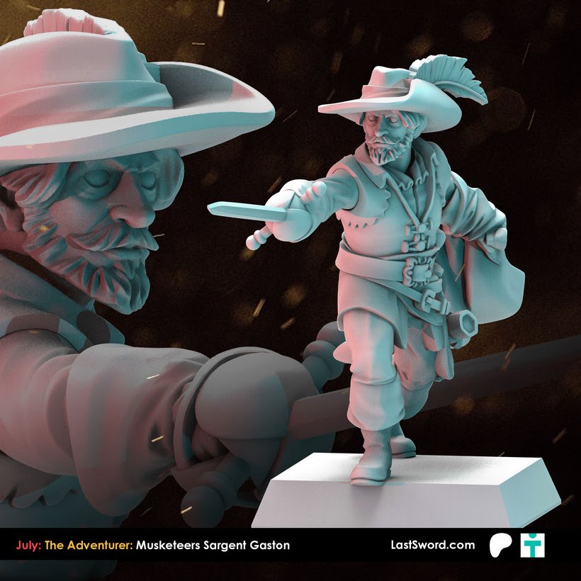 Como cada mes, Last Sword sacan un buen puñado de STL’s para sus mecenas en su Patreon y que terminarán estando a la venta en su tienda online (tanto el STL como la miniatura impresa en alta calidad). Como ya sabéis, ahora mismo tienen dos niveles de aportación en Patreon: The Bannerman (10€ más IVA al mes, con miniaturas de fantasía, normalmente paralelas a Warhammer; este mes Altos Elfos), y The Adventurer (9.50$, miniaturas «históricas»), o bien 18.50$ (más IVA) por un completo. Este mes, Marienburgo para Bannerman, y Mosqueteros para Adventurer.