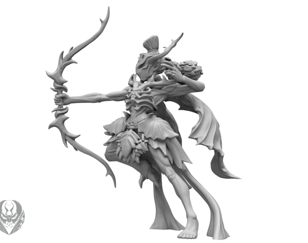 Por otro lado, aquí tenemos el héroe de disparo. Algunos documentos lo llaman Mhor Sidhe, mientras que en otro es el Rhun Sidhe. Veremos en que queda. Es una mini bastante más ‘tradicional’. Es una mini de un arquero, sin más ni menos. Es técnimanete guapa y me gusta la cabeza/casco.