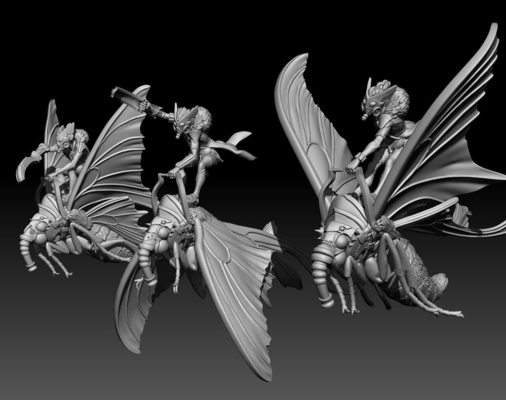 Los saqueadores ciannir son la variante de disparo, mientras que los saqueadores Skiathan son la variante de melee. Estas minis me encantan, porque las polillas no son algo que se suela ver de normal. Me gustan mucho los jinetes, en particular los de melee que me recuerdan al goblin verde de marvel. Se que a algunos no les gustan las cabezas de las polillas de melee, pero la otra variante está disponible.