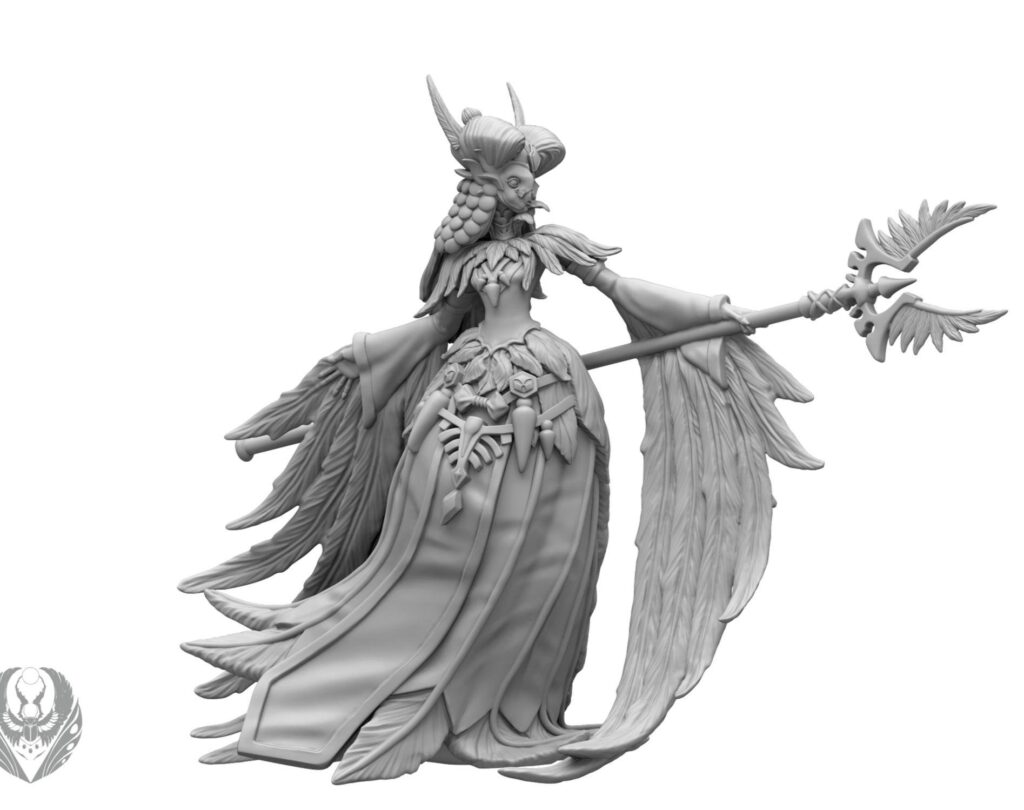 La Seanchas Sidhe será el mago de apoyo de las cortes. El estilo de la cara y peinado me recuerda en cierta medida a la condesa del Darkest Dungeon, mientras que el vestido es claramente reminiscente del plumaje de una ave. Es bastante curiosa y tiene pinta que será un bruto y no una unidad de infantería.