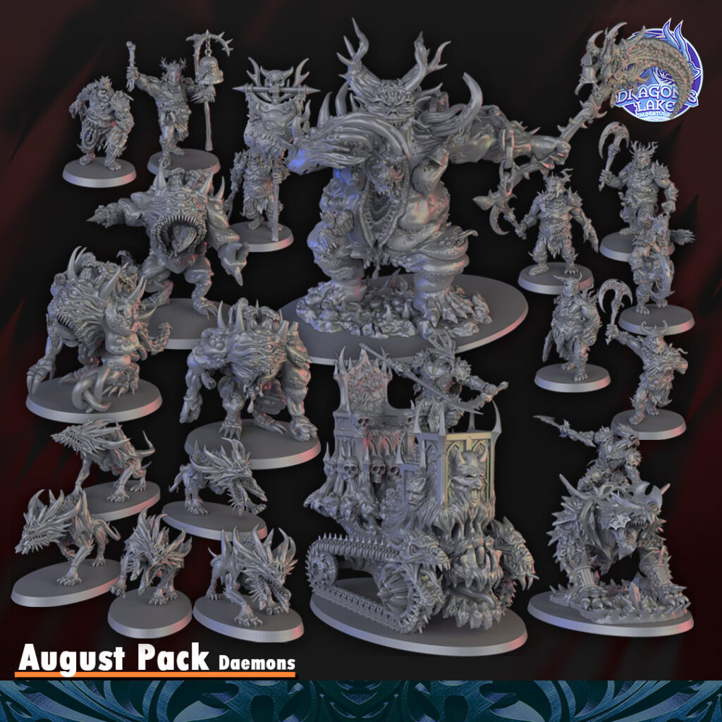 Fieles a su cita mensual, Dragon’s Lake siguen con los demonios en su Patreon (9€+IVA). Ya sabéis, aportas dinero para que sigan esculpiendo miniaturas, a cambio te dan los STL que luego venderán en su tienda online (o miniaturas en su página web ya impresas). Por si queda algún despistado, son miniaturas diseñadas para The Ninth Age, pero la gran mayoría son útiles en cualquier otro juego de fantasía (especialmente Warhammer / The Old World) y, siendo Demonios, también válidos para Age of Sigmar o para Warhammer 40.000. Necesitas una impresora 3D de resina para poder imprimirte estas miniaturas en casa (hay tiendas que ofrecen servicio de impresión si les llevas tú los STL).