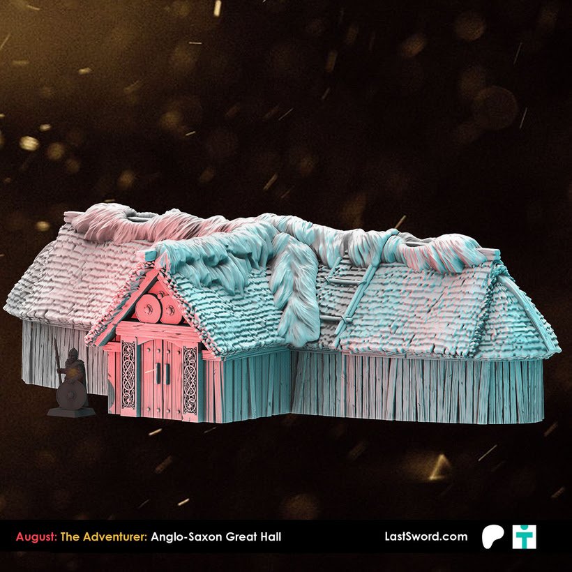 Empezaremos por las miniaturas históricas. Vamos con más anglosajones, y tenemos un personaje a caballo (Odda), los Gesiths en formación de ataque y de muro de escudos, y los Ealdorman. Por si fuera poco, acompaña un Gran Salón de los anglosajones.