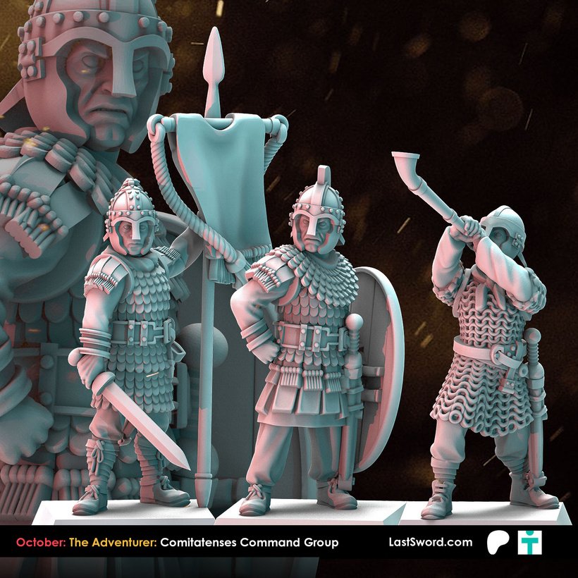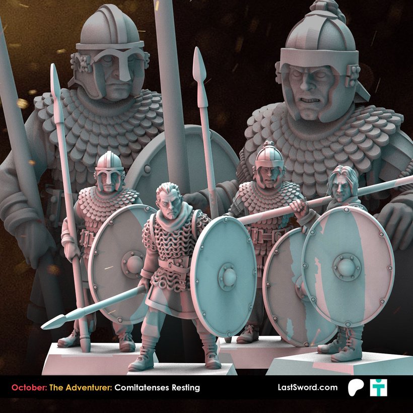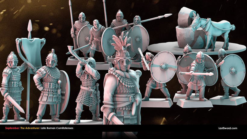 Los fans de las sandalias están de enhorabuena este mes. Con los STL de este nivel será posible imprimir hasta ocho Comitatenses (cuatro en posición más de combate y cuatro en posición más de descanso) con su grupo de mando, más un general Comitatenses. Para acompañar, un asno moliendo. Al paso que van podrán sacar un pack de STL’s para imprimir el pesebre con la de animalicos que llevan 🙂 (yo dejo la idea…).