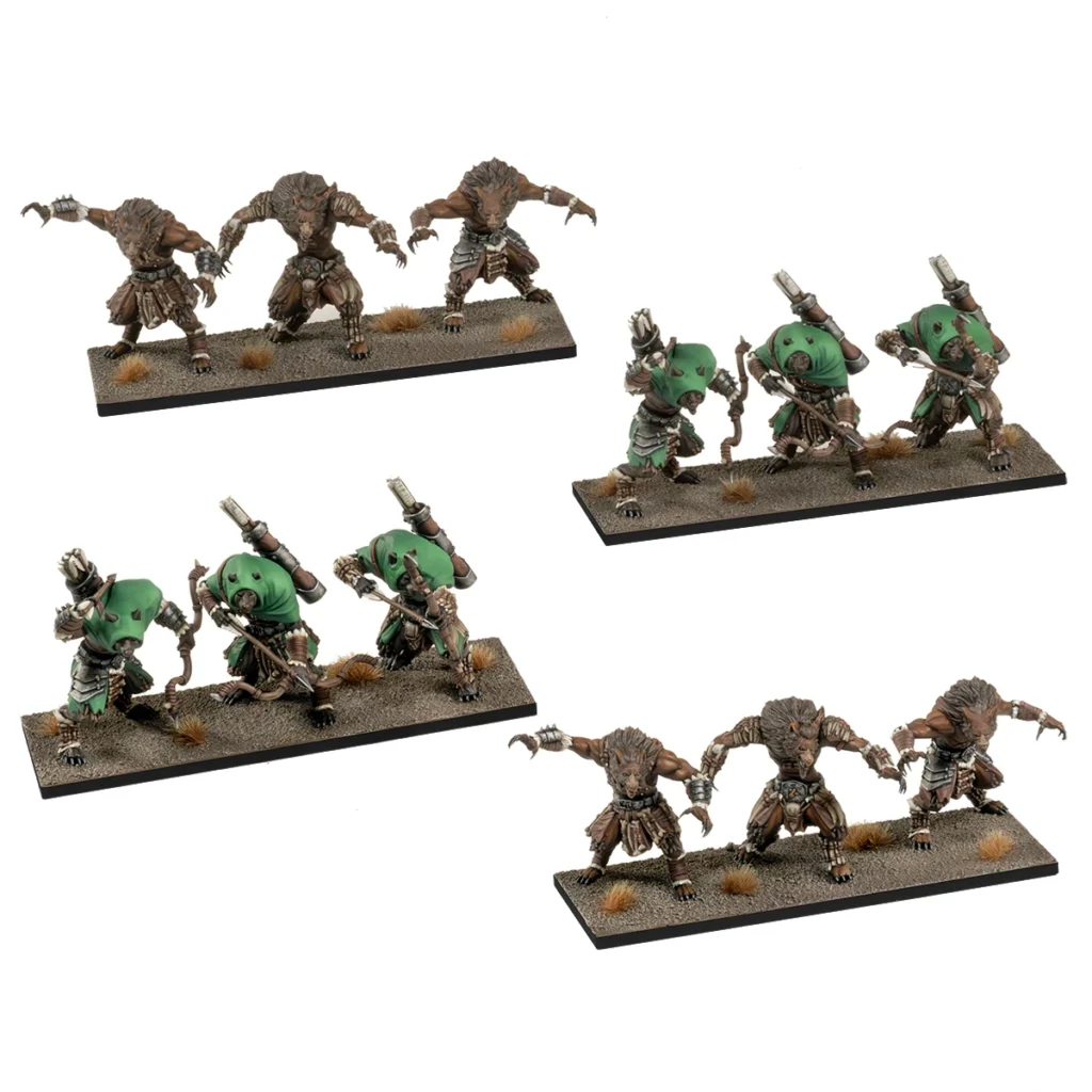 Y con nueva edición, siempre viene una nueva gama de miniaturas. Los Shirkalli, una raza de hombres perro venidos del oeste, con un odio hacia la magia y perteneciente a las fuerzas del bien; aterriza en Panizor para acabar con el uso irresponsable de la magia. Su primer enemigo sera el Reino Tridente, que no se lo pondrá nada fácil (y que tambien tienen nuevas unidades en plástico por la caja de inicio)