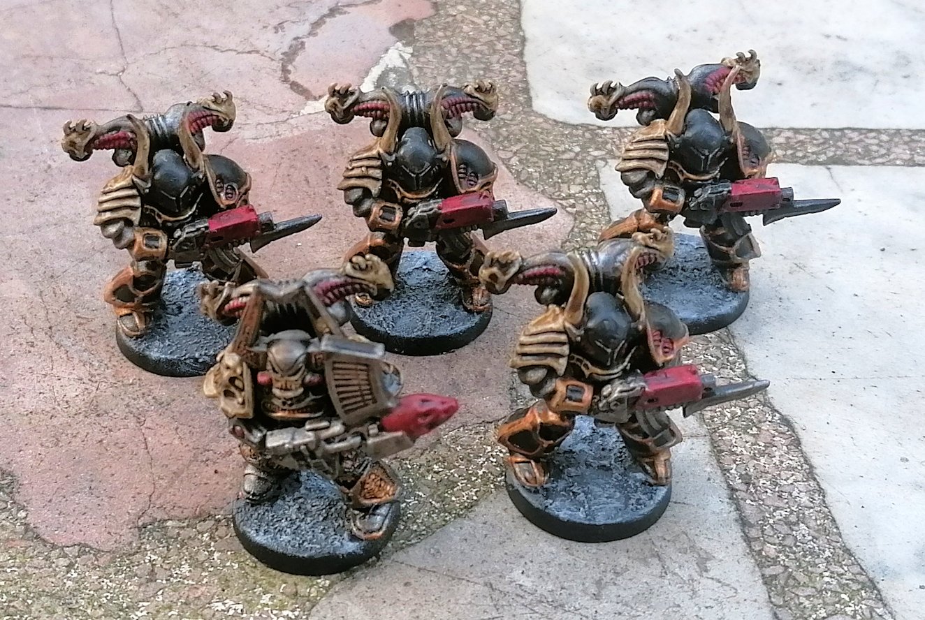 De momento sigo jugando con Necrones, pero bueno, tengo Tiránidos para aburrir. De eldars me compré la Patrulla (Creo que, con algunas «sobras» que tenía, ahora llego a 1k), de Orkos ya tenía cosa (y más que va cayendo) y de Caos también tenía, pero ni idea de puntos. No tengo «prisa» en pintar las Patrullas, pero bueno, ya que las tengo…