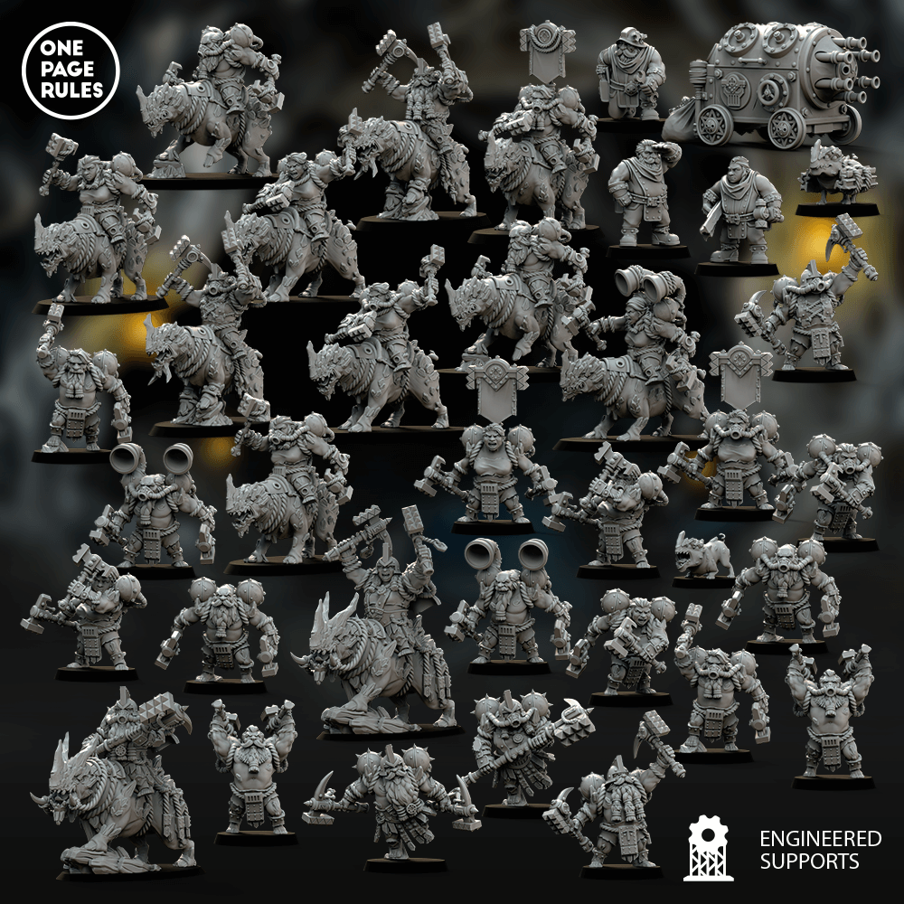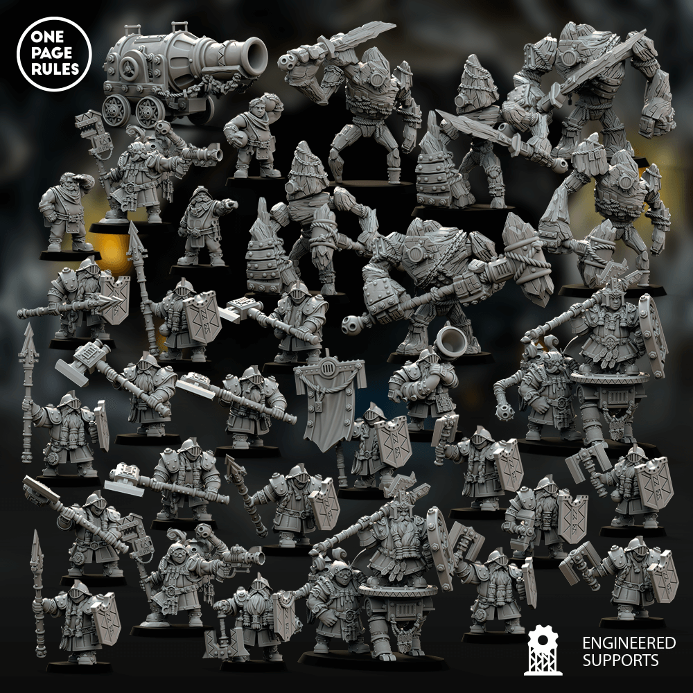 Siguiendo con la línea medieval, tenemos a los mejores amigos de los elfos : los enanos. Y al contrario que los elfos del bosque, esta linea de miniaturas si aporta bastante mas. Una mezcla steampunk muy curiosa, aunque demasiado “limpia” para mi gusto.