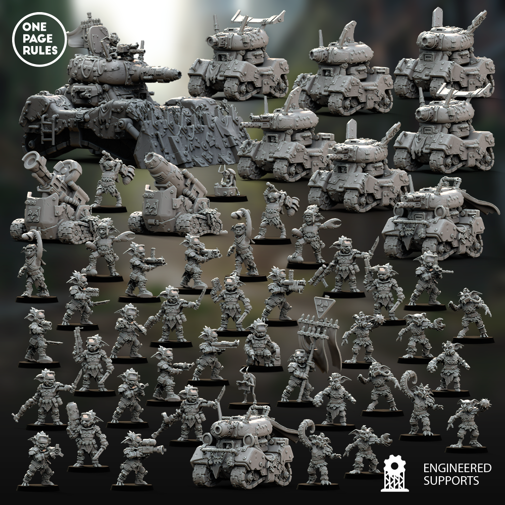 No hay ningun aspecto de estos goblins que pueda criticar, quizás el hecho de que sean un poco “cabezones” . Desde que vi el concepto, me encantó la línea de diseño que estaban llevando y si algún día imprimo un ejército de One Page Rules, probablemente este tendría muchas papeletas para ser el primero en pasar por la impresora.