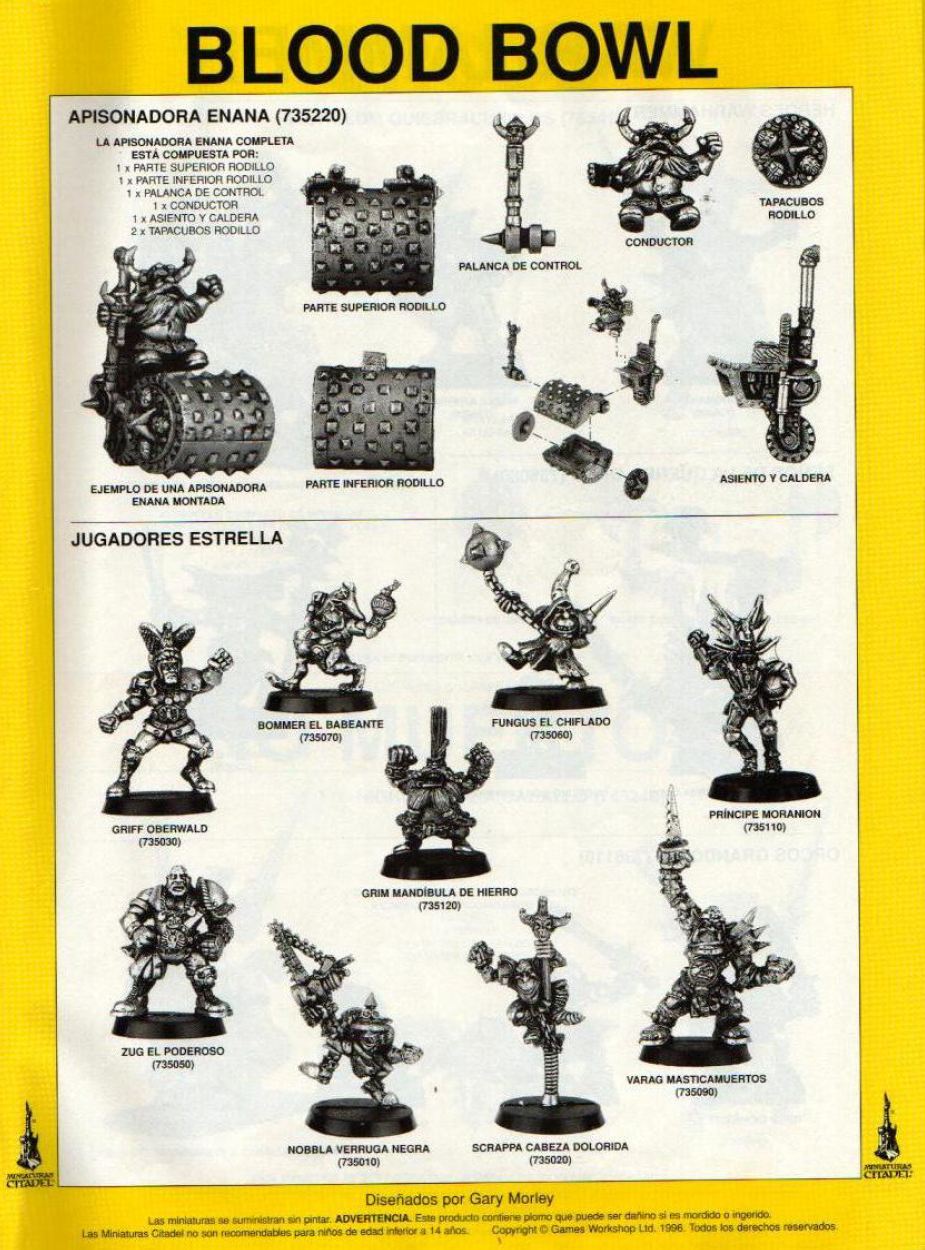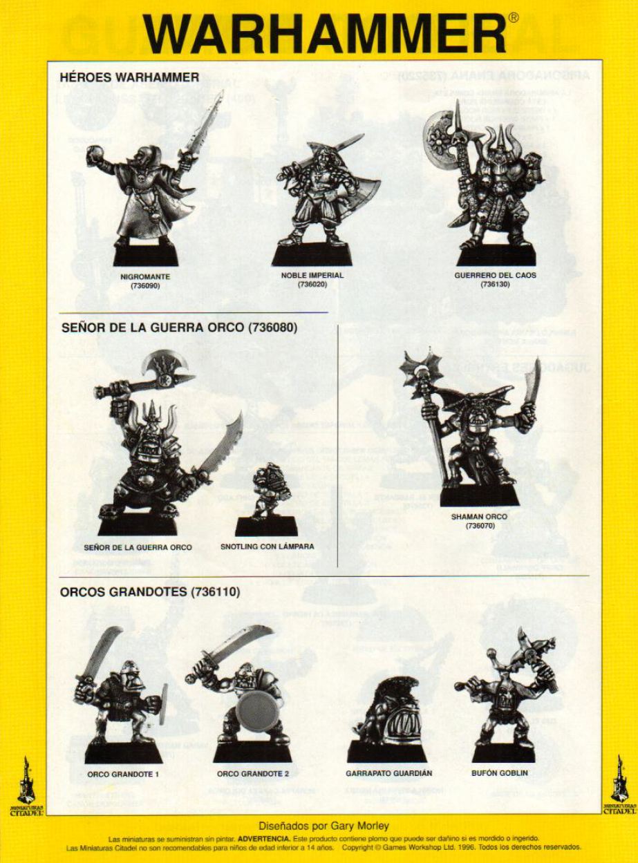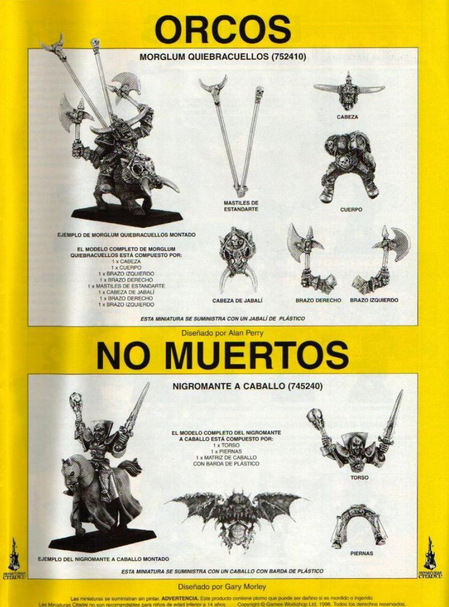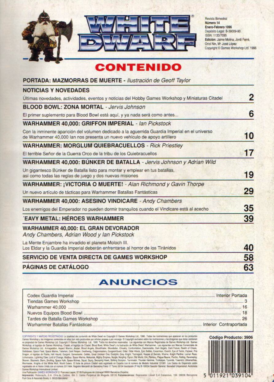 Mi sección favorita siempre era la de catálogo. Vemos en este número el catálogo de novedades de Guardia Imperial, algo de Blood Bowl, y un poco de Warhammer (incluyendo las miniaturas de Warhammer Quest de las que hablábamos al principio).
