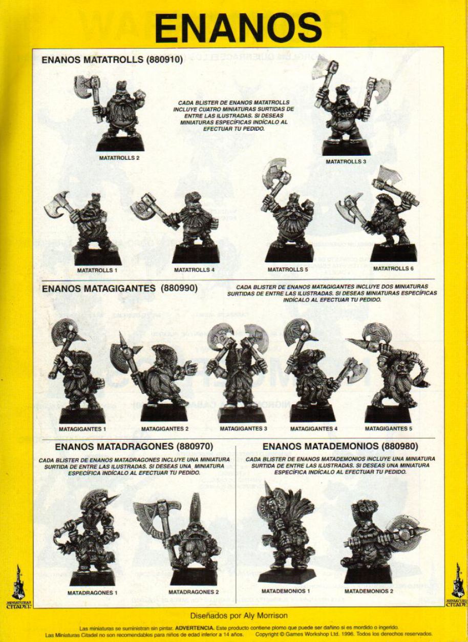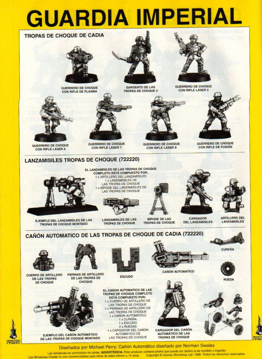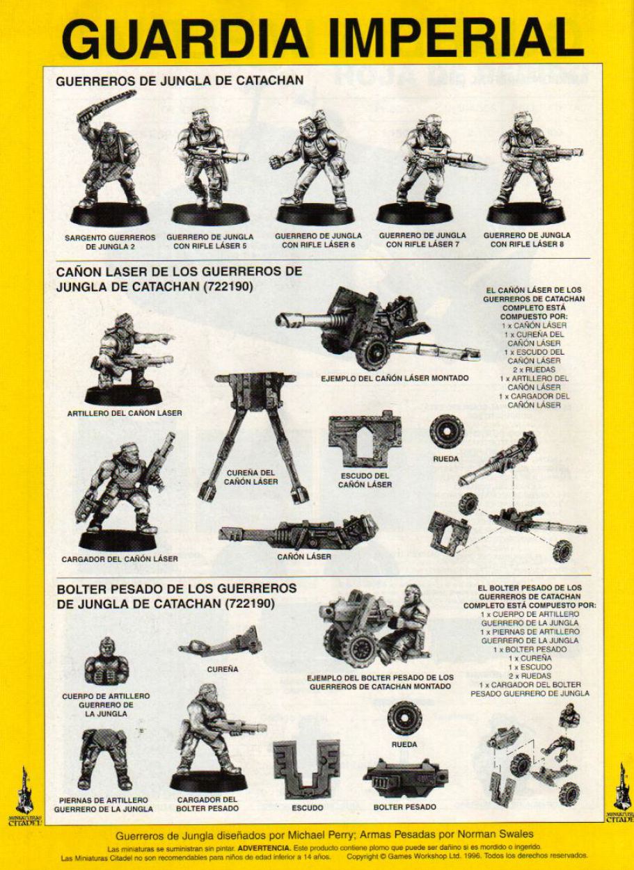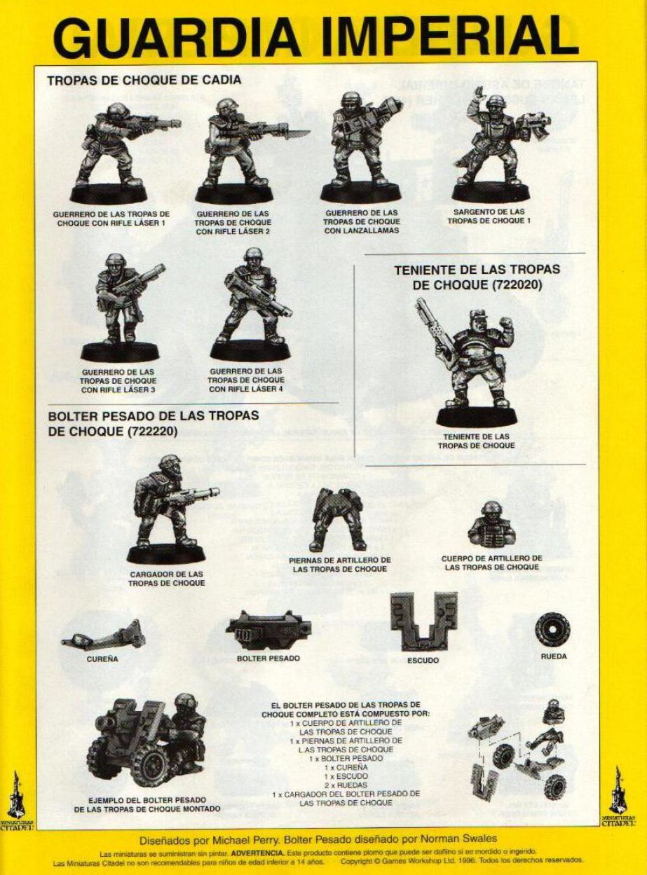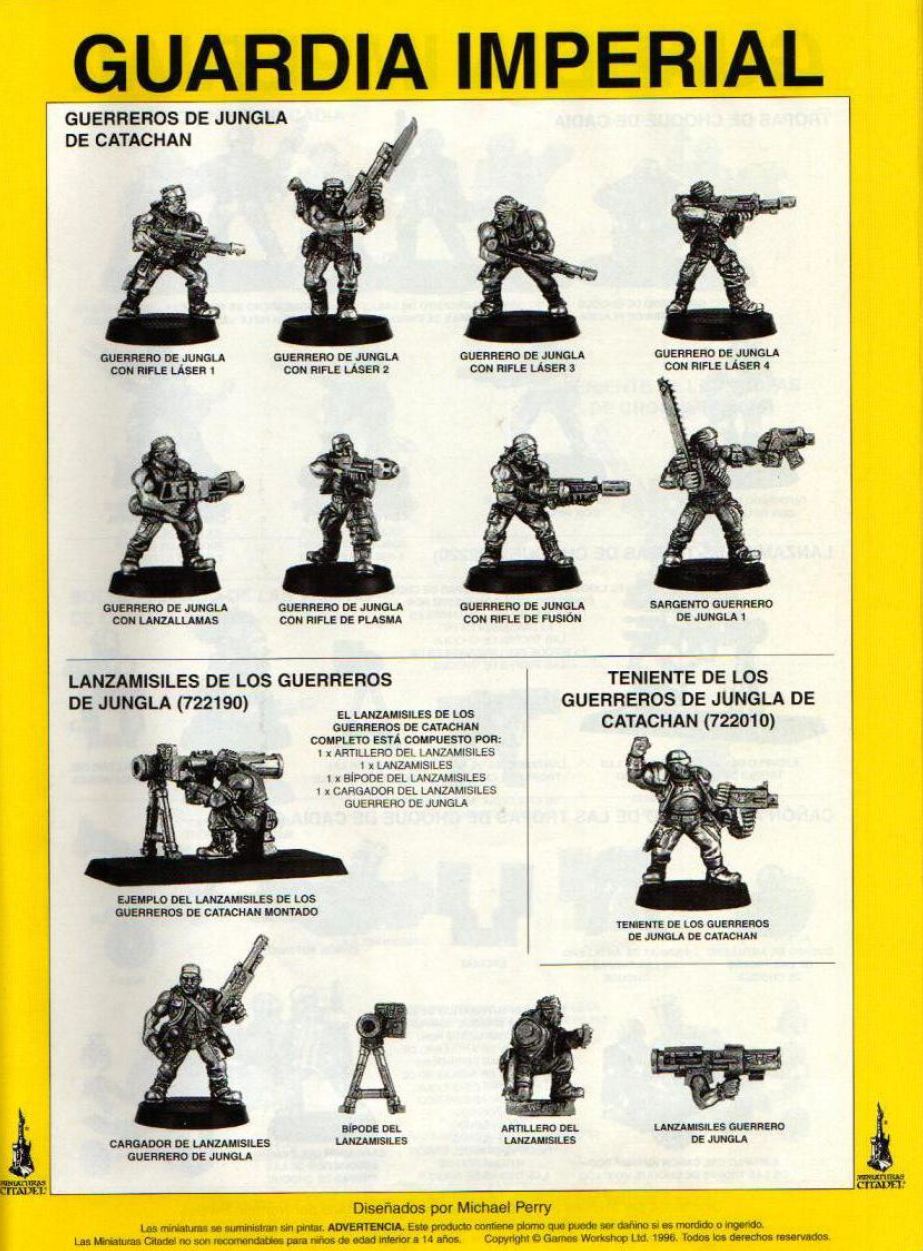 Mi sección favorita siempre era la de catálogo. Vemos en este número el catálogo de novedades de Guardia Imperial, algo de Blood Bowl, y un poco de Warhammer (incluyendo las miniaturas de Warhammer Quest de las que hablábamos al principio).