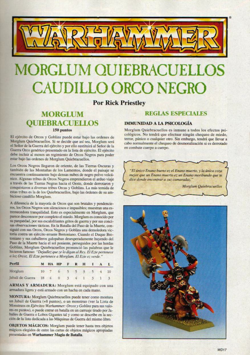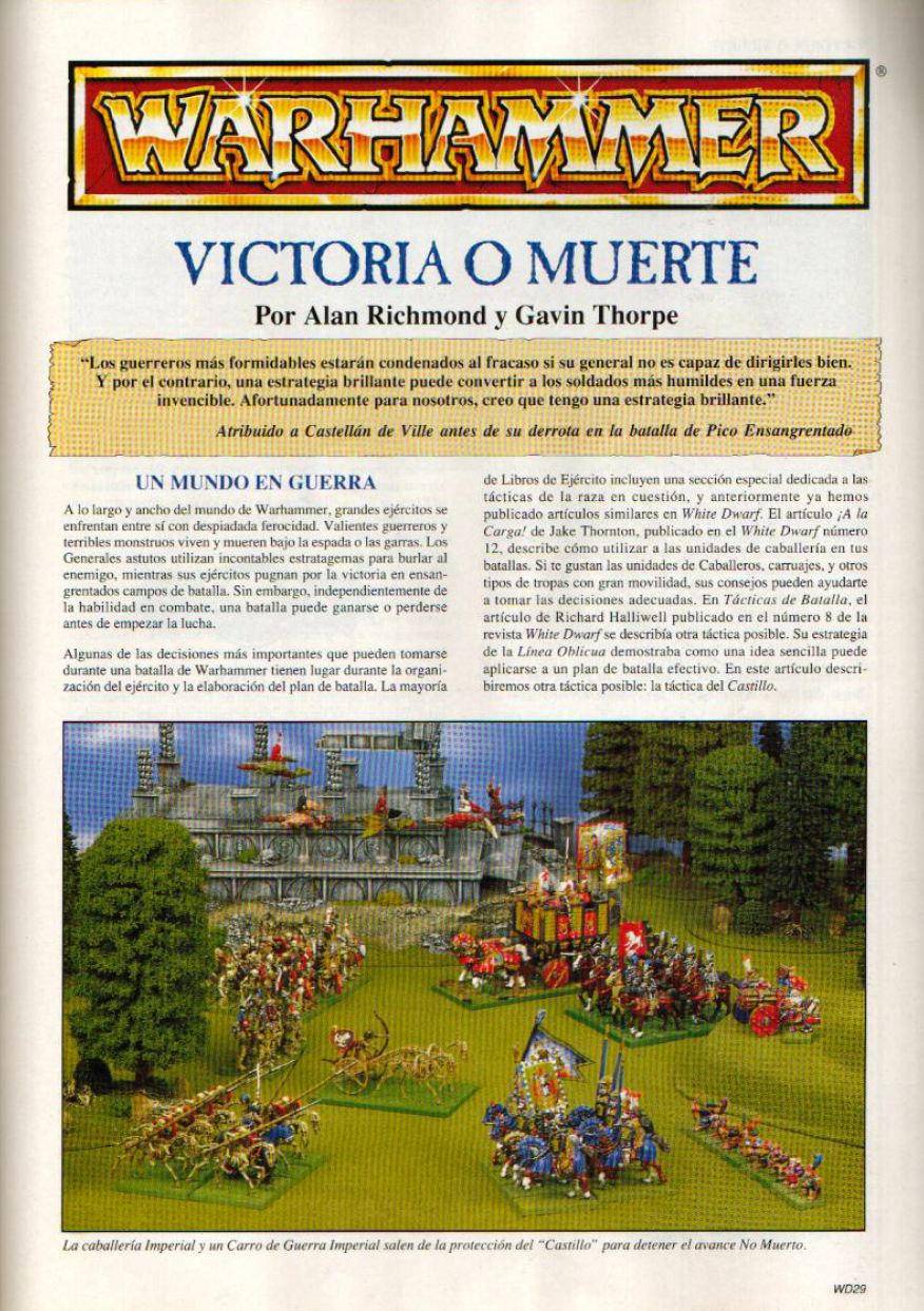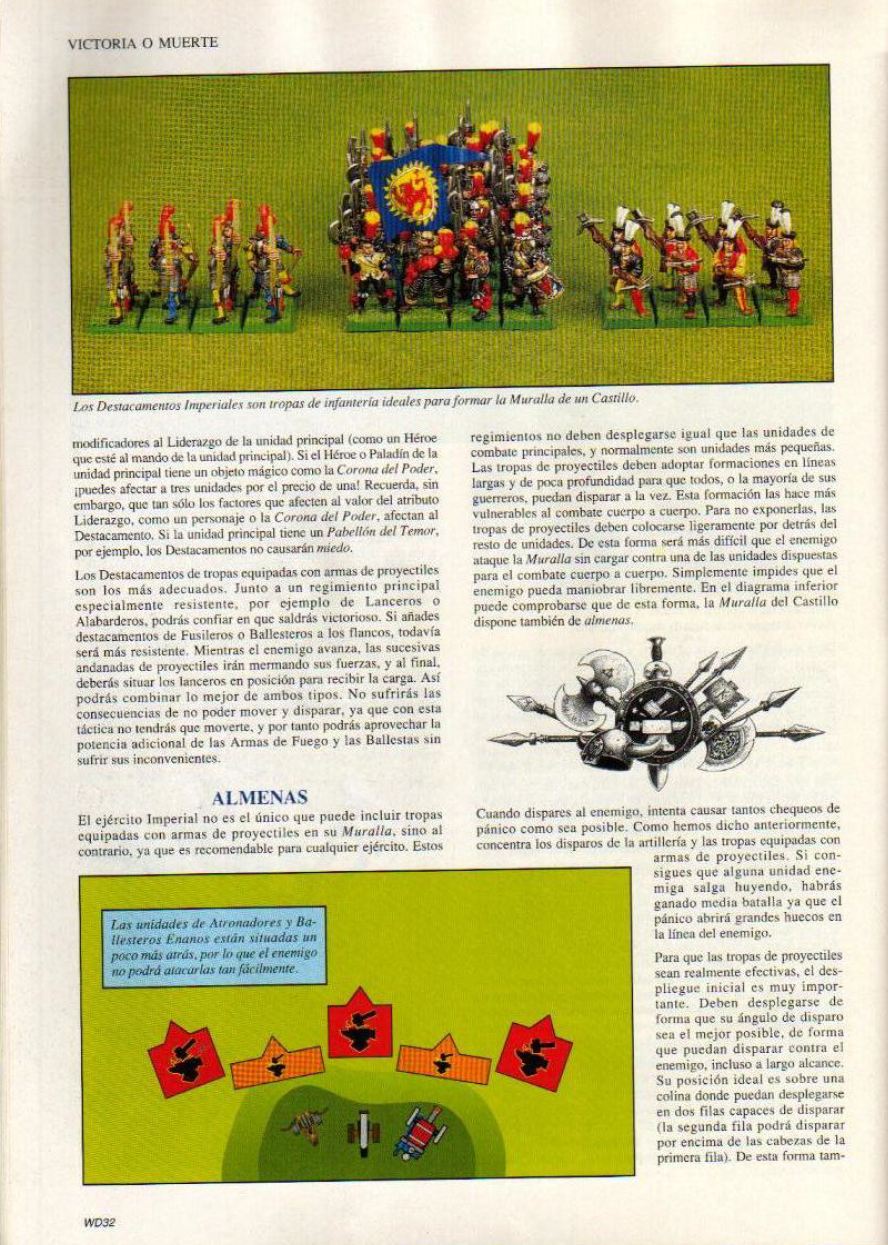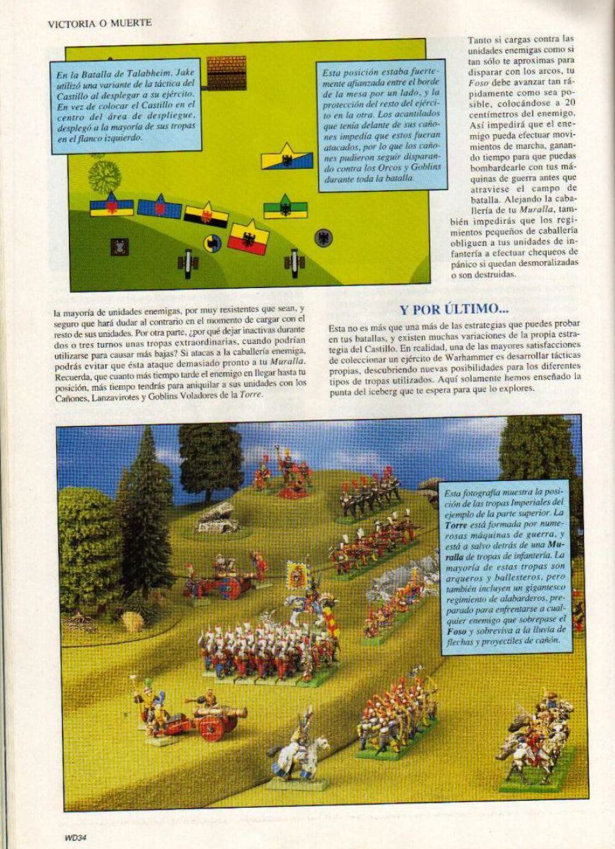 De Warhammer no había mucho contenido (para variar), pero al menos era interesante. Por una parte nos daban las reglas de Morglum Quiebracuellos (novedad del mes), y por otra un (para su época) buen artículo de estrategia sobre cómo jugar con el Imperio y los distintos tipos de despliegue variaciones de «castillo». Mucho mejor que el número anterior.