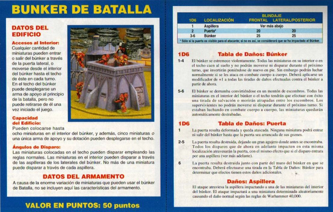 También se incluían reglas para usar un Búnker de Batalla, incluida su hoja de datos y dos misiones relacionadas.