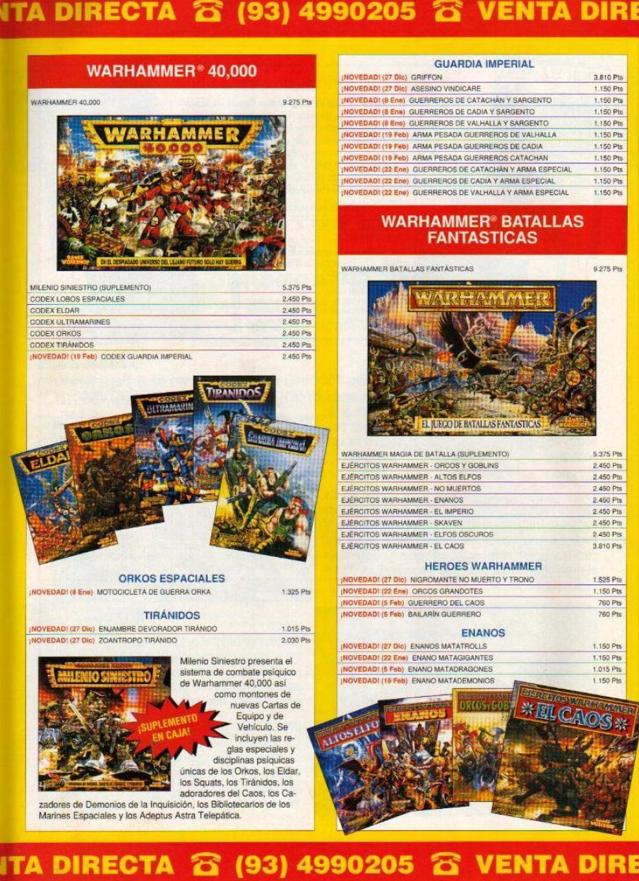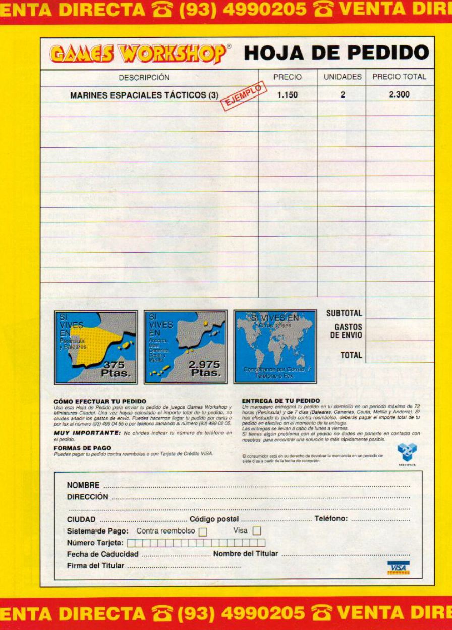 Otro clásico siempre es la sección de Venta Directa, con los precios de la época (de hace 30 años). En esta ocasión veíamos sobre todo las novedades del mes; el año empezaba fuerte, con muchas miniaturas nuevas para los tres juegos que trataban entonces.