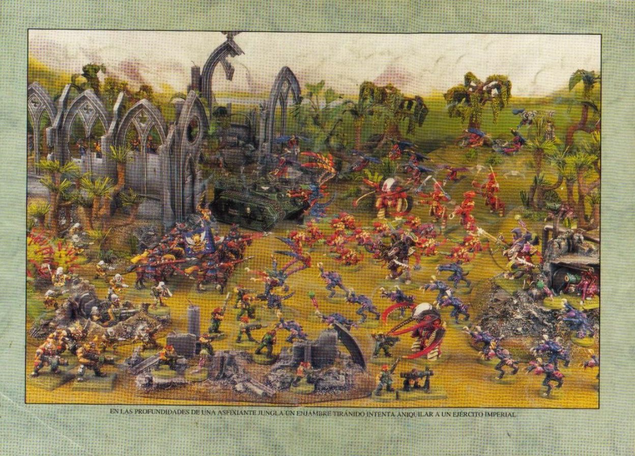 La contraportada era otra inspiradora fotografía de una batalla, enfrentándose los tiránidos a la Gloriosa. Época Roja en todo su esplendor.