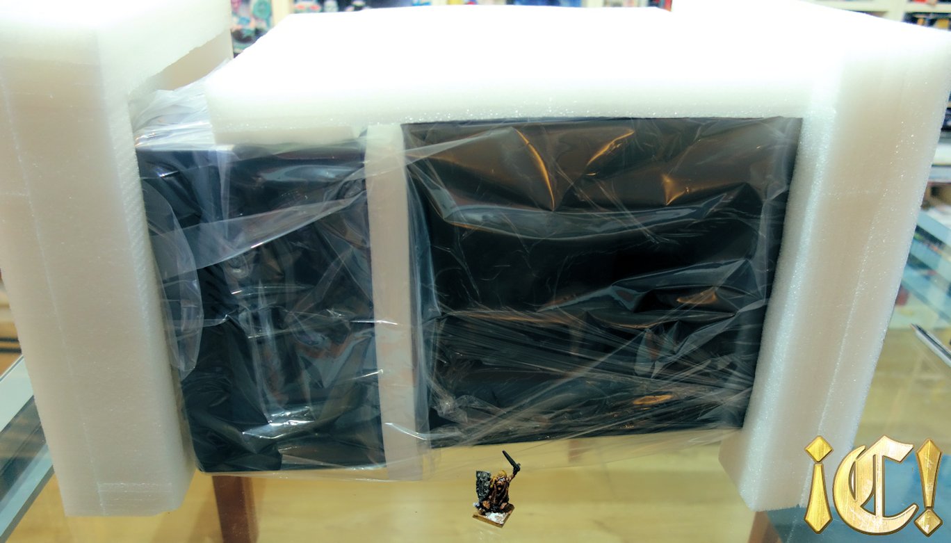 La caja es ENOOORME. Muy grande. Eso sí, viene súper protegida (Tronak el Kárbaro estará para que veais la escala). Al abrir hay una especie de tubitos de aire y al sacarlo se ven más componentes…