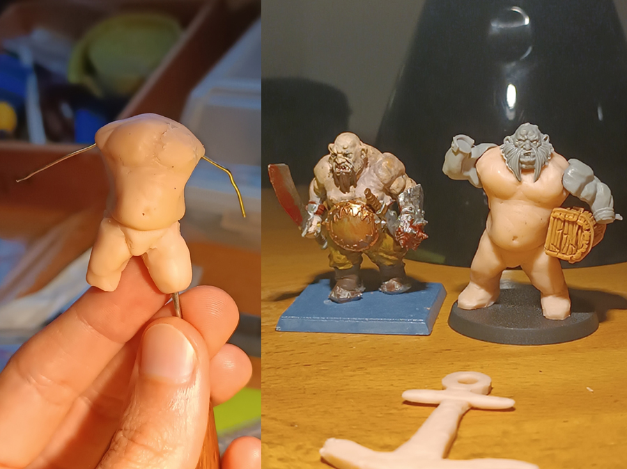 Resulta que tenía ya desde hace un tiempo curiosidad por probar a esculpir desde cero una mini, y aproveché un regalito en forma de masilla Sculpey Firm para, por fin, animarme. Así que, ¿por qué no empezar por un modelo grande y relativamente sencillo y añadir un ogro a la compañía?