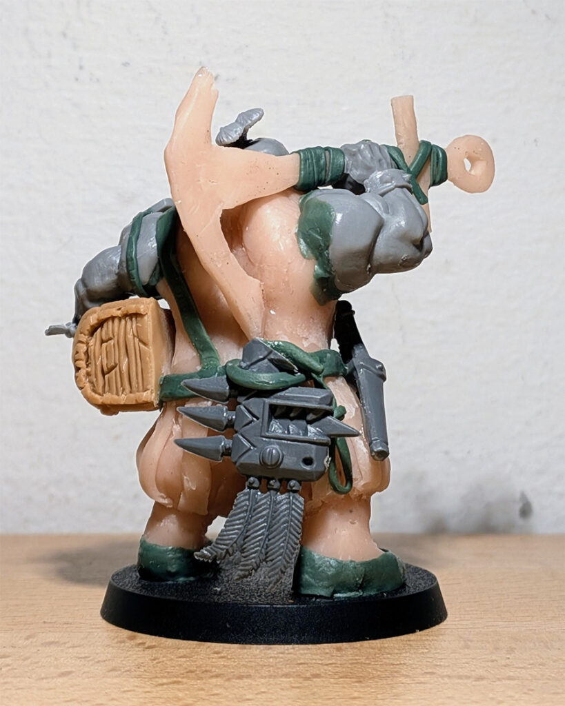Y, por último, quería incluir un arma improvisada. No me gusta cuando veo un ogro vistiendo ropas y armas normales sobredimensionadas para su tamaño, pareciendo un humano, pero más grande (sí, te miro a ti). Un arma improvisada denota ese salvajismo de quien es demasiado grande y bruto para todo lo que la civilización humana puede ofrecerle y tiene que tirar de lo que vaya encontrando para guerrear.