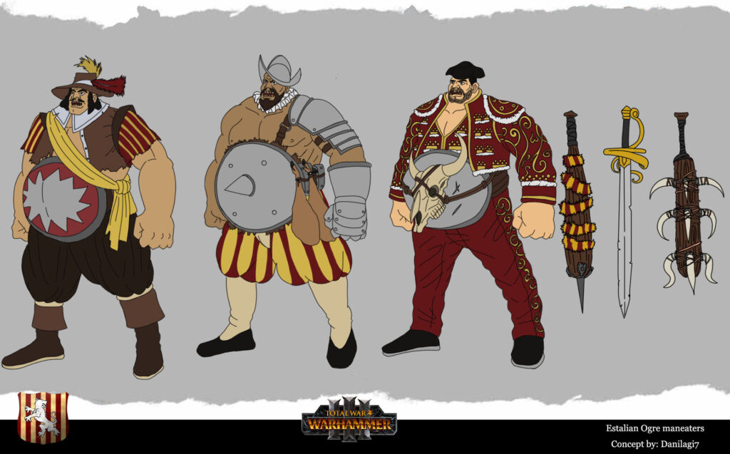 Entre mis principales fuentes de inspiración se encuentran algunos de los dibujos oficiales de Warhammer Fantasy, principalmente el ogro pirata y los bocetos de mercenarios ogros estalianos de Dani Delgado.