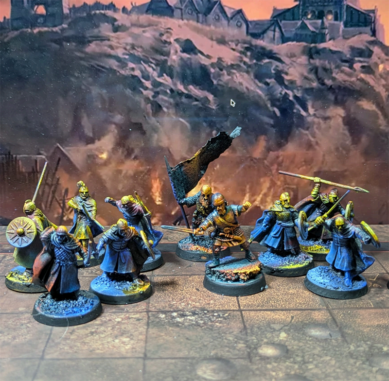 Eso es lo que quise experimentar: la intención, lo que quise contar con estas miniaturas. Esta pandilla de salvajes quemando Edoras o cualquier aldea de criadores de cerdos. Y eso no siempre se consigue con las técnicas habituales (capa base, luces, etc.).