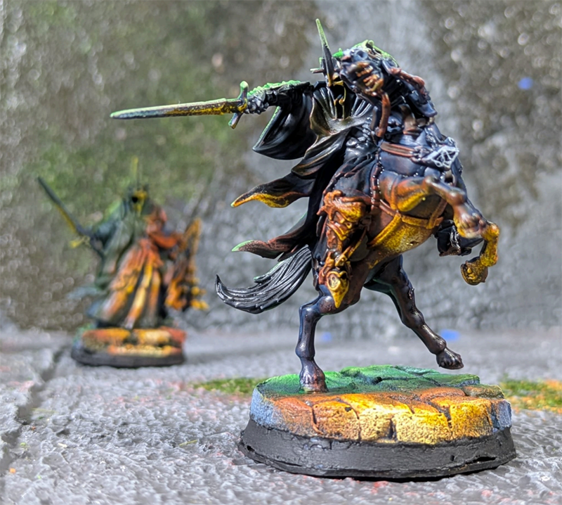 Da igual el nivel de detalle, da igual lo que opine la gente o qué marca de pintura use. Lo que quiero es que estas miniaturas llamen la atención porque están contando una historia. Quería jugar con colores y efectos de luz. Imagino que, en el multiverso de mi vida donde soy multimillonario y expongo mis ejércitos pintados en un museo de mármol —donde la gente paga 200 euros la entrada—, alguien pueda señalar y decir: «¡Mira! Estos son los villanos». Solo con ver los colores y lo que genuinamente inspira la miniatura terminada.