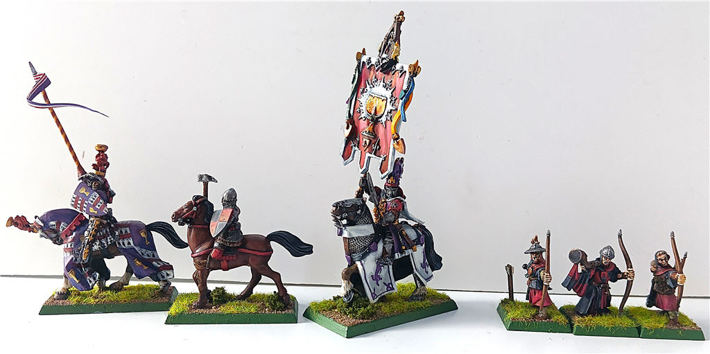 Bretonia: 6 miniaturas pintadas, las 6 de objetivo. Al final conseguí terminar los caballeros del grial. Me he liado más de lo que debería, y encima el porta de 6ª tuve que hacer 2 veces la barda ya que la primera idea (hacer como enredaderas) me quedó fatal, así que tuve que repintar de blanco la barda y hacer el dibujo que veis. El hombre de armas que veis es el último modelo que me faltaba, así que me puse a pintarlo en cuanto llegó a mis manos. Con este ya tengo los 28 modelos que han salido desde 3ª a 5ª, se nota que estos modelos les gustaron a los hermanos Perry. Luego tenemos 3 arqueros más, la tanda era de 5, pero 2 se han caído al final, pero los dejo para diciembre. En total llevo 44 de 47 miniaturas, 93,62%, en verde.