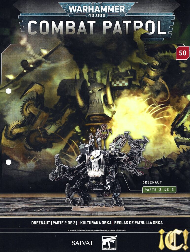 Este número 50 tiene la segunda parte del Dreznaut orko (que, como recordáis, tenía un descuento del 30%). Si el número anterior tenía dos matrices, éste tiene una matriz y la peana. Ya comenté el montaje en el número anterior, y sigo opinando que se trata de un gadget realmente muy interesante y con buen descuento (más si tenemos en cuenta que ahora ya no está en la caja de Patrulla).