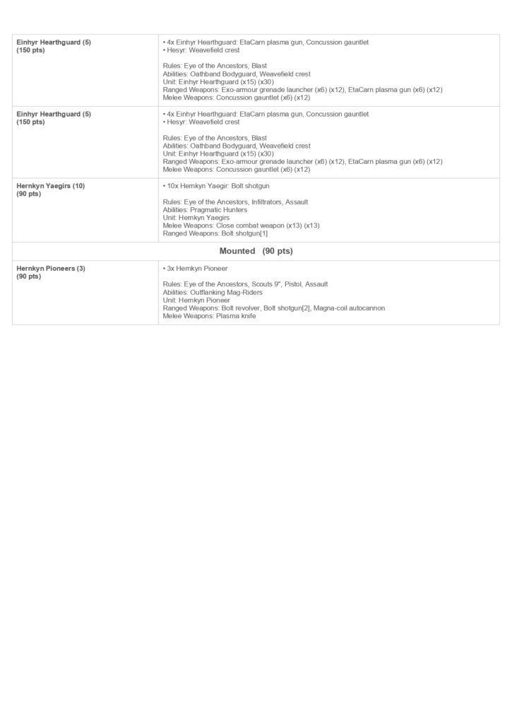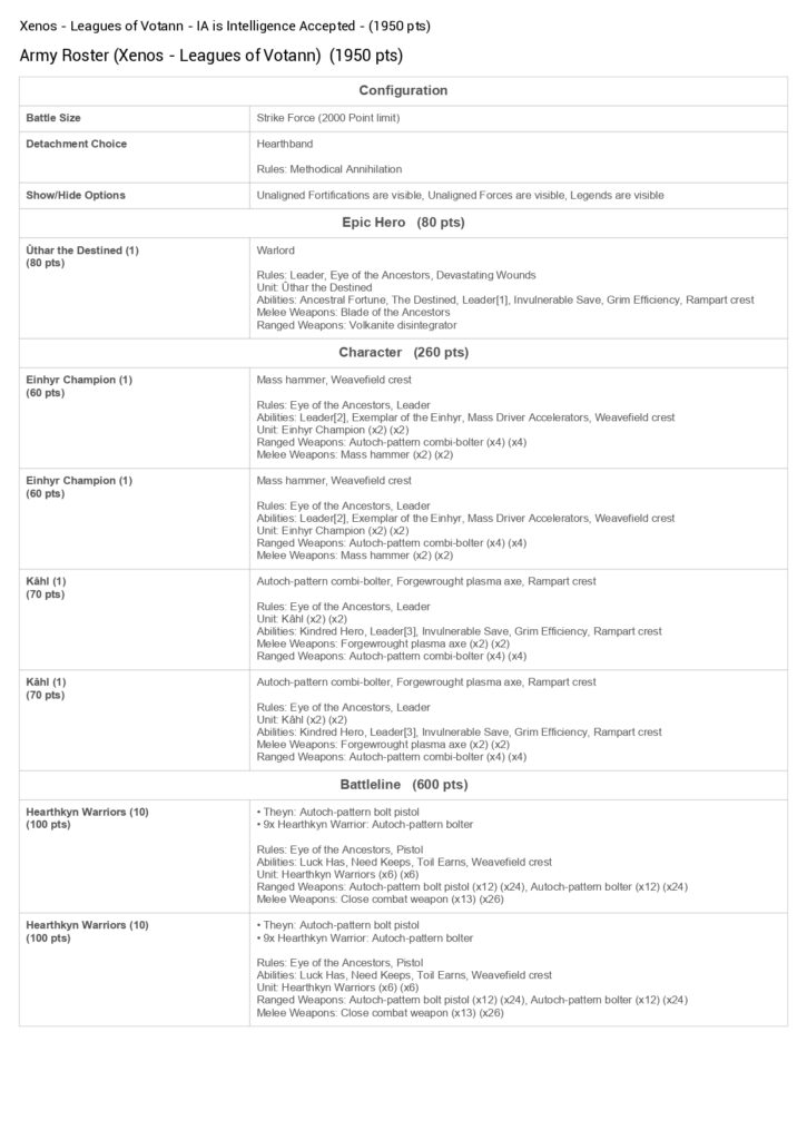 Ya con la lista demo, tenemos una base mas que sólida. ¿Faltaría un buen transporte? Si, pero ya con esto tenemos de sobra para empezar. Lo mejor, es que tenemos todas las opciones posibles por alrededor de 300 euros. Pero tiene truco : si usas una unidad de Guardiamoradas y lo conviertes en 5 líderes, se quedaría en mucho menos….
