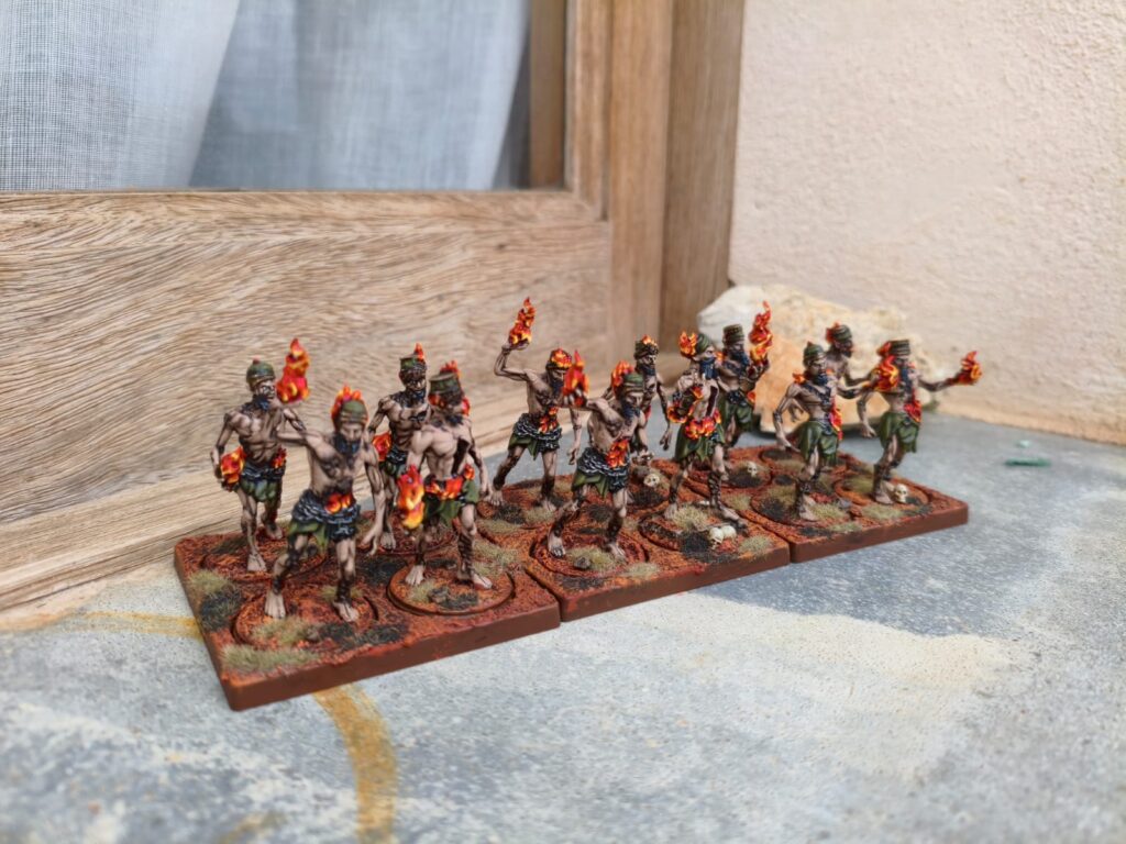 Este mes he finiquitado mi unidad de Ghouls, de Reyes Hechiceros. Se trata de una unidad básica para el ejército (es la única ligera). Ya había pintado 4 minis de las 12 que componían la unidad (curiosamente fueron las primeras que pinté cuando me pillé la facción) un año después, o mas ya no lo sé el tiempo pasa muy rápido, al fin la he terminado.