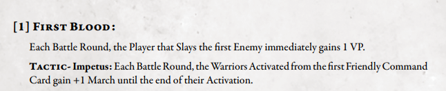 First blood ahora junta las ordenes y parte de la magía en una fase propia, la fase de mando. Al principio de cada fase de mando, tus caudillos, héroes y sargentos eligen las ordenes que aplicarán. Los sargentos están limitados a las tres órdenes genéricas que fija el reglamento y sólo pueden afectar a los guerreros de su regimiento. Los caudillos y héroes no tienen esta restricción y casi siempre tienen órdenes propias.