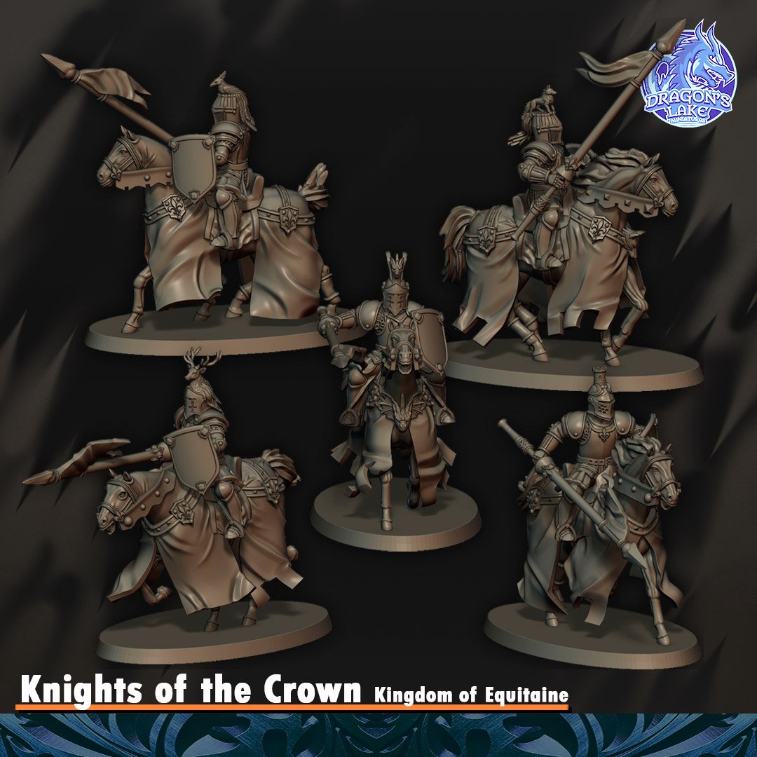 Fieles a su cita mensual, los chicos de Dragons Lake (Patreon a 9€+IVA) vuelven a la carga, lanza en ristre (y nunca mejor dicho), con un montón de miniaturas de Bretonia (Equitania en T9A).. Os recordamos que, como siempre, con este dinero no sólo os dan los STL sino que ayudáis a que puedan vender las minis en su página web ya impresas.