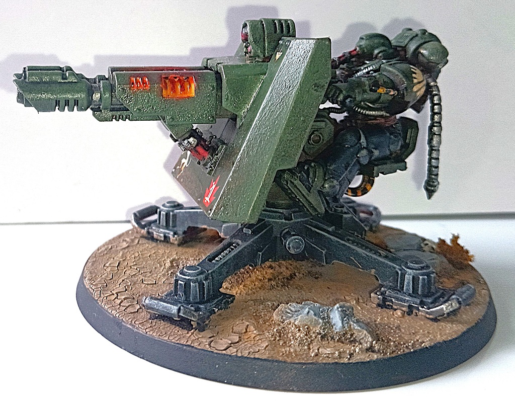 Marines espaciales: Compré esta torreta de segunda mano ya montada, pero aprovechando que iba a tener algo más de tiempo para pintar aproveché para quitarla pronto de la marea roja (estaba así imprimada). En ella he probado por primera vez los panel liner de AK y me han gustado un montón. Me tocó hacer el símbolo del capitulo a mano porque descubrí que no tenía calcas, ha quedado bastante bien, pero ya me he hecho con unas cuantas gracias a mi dealer proveedor habitual, ya que se tarta un montón de tiempo para que quede resultona. 1 de 25, 4%, en rojo, pero en marzo recupero.