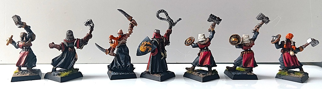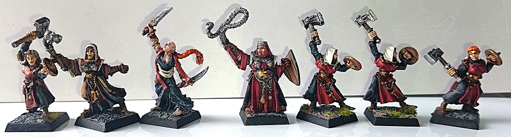 Mordheim: 7 minis y de objetivo. Aprovechando que han empezado una campaña en mi tienda habitual (aunque no me he podido apuntar) he cogido todas las miniaturas que tenia a medias de mis tiempos mozos y las he terminado y renovado. Poco que decir, se pintan bien y el efecto nostalgia hace pintarlas con mimo, tengo otras 5 a las que ya he imprimado para una segunda ronda en un par de meses. En total 7 de 10, 70%, objetivo en verde.